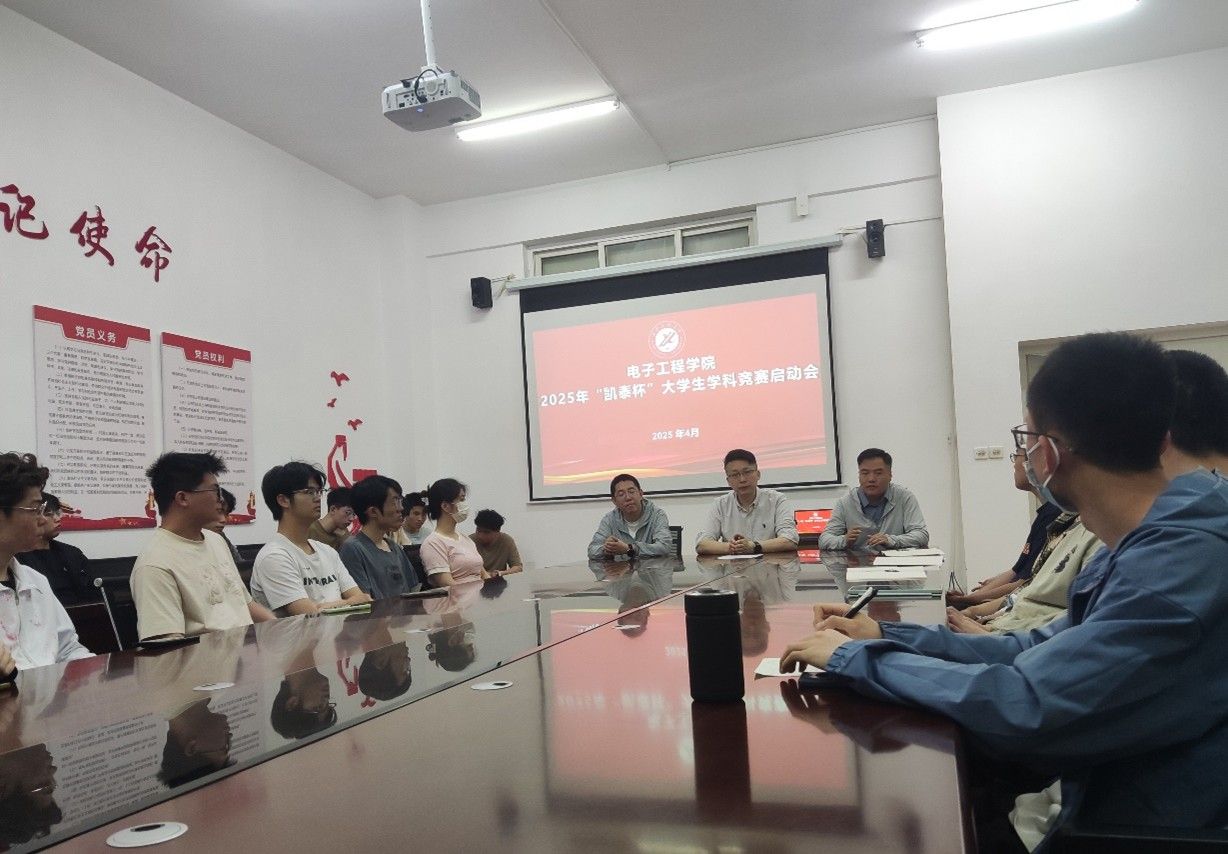 為激發學生創新思維,提升實踐能力,進一步推動學院學科競賽工作邁向新高度,4月22日下午,電子工程學院在行知樓321會議室召開2025年“凱泰杯”大學生學科競賽啟動會。院長李飛、實驗中心教師代表、輔導員及各年級20余名學科競賽參賽學生代表參會。