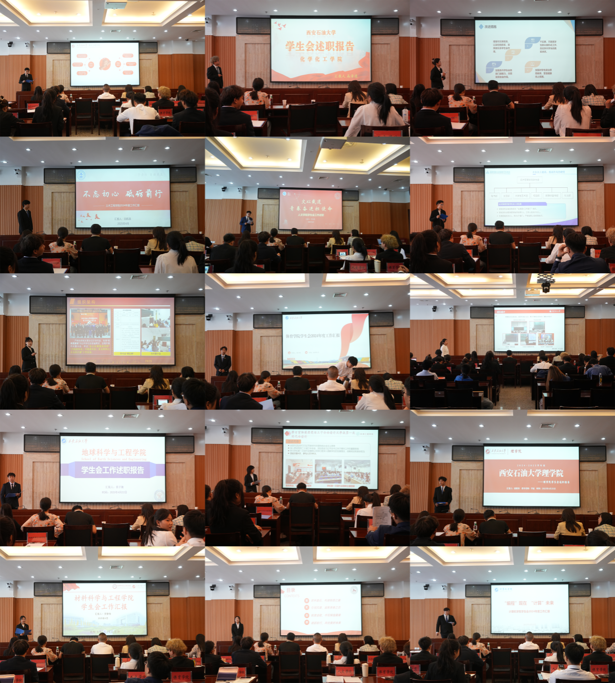 會上,各院(系)學生會執行主席根據抽簽順序依次述職,圍繞組織建設、思想引領、品牌活動、權益服務、社會實踐、校院聯動、從嚴治會等方面展開匯報。各院(系)學生會充分總結了2024年度開展的各項特色活動及取得的優異成績,剖析了工作中的不足之處及改進措施,規劃了本年度的學生會工作。