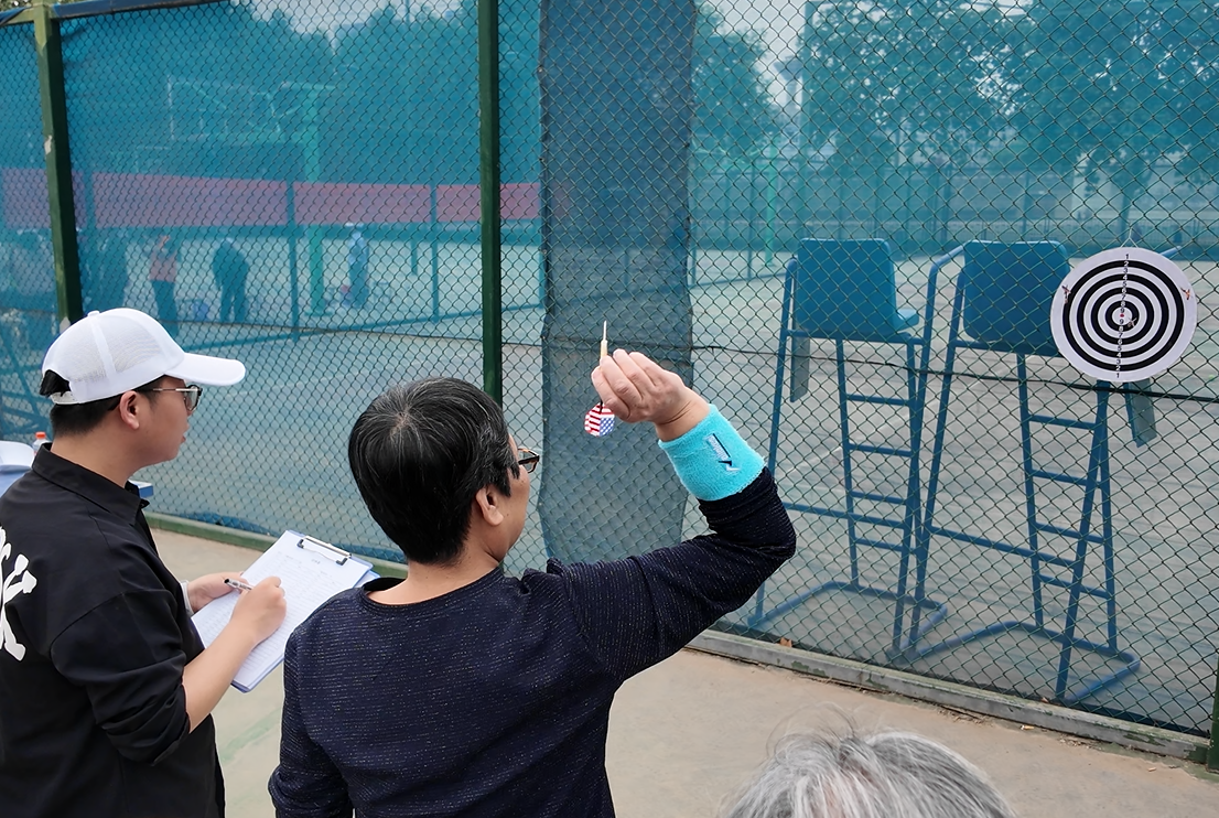此次趣味運動會項目豐富多樣,充分考慮老同志們的身體狀況和興趣愛好。門球奪標考驗精準與策略,老同志們手握球桿,屏氣凝神,專注瞄準目標;套圈游戲充滿童趣,大家全神貫注,將手中的套圈奮力拋出,試圖套住心儀的獎品;保齡球項目中,老同志們動作利落,隨著球滾動,瓶倒下的瞬間,歡呼聲此起彼伏;網球投準、飛鏢投準、定點投籃等項目也深受歡迎,大家各展身手,現場氣氛熱烈。
