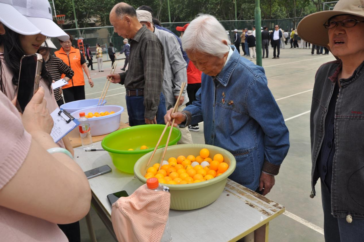 為關愛高齡老同志,運動會特別為 80 歲以上的老同志增設筷子夾球和擲乒乓球項目。這些項目既充滿趣味,又能鍛煉手部精細動作和身體協調性。老同志們興致勃勃地參與其中,臉上洋溢著燦爛的笑容,現場洋溢著歡樂和諧的氛圍。