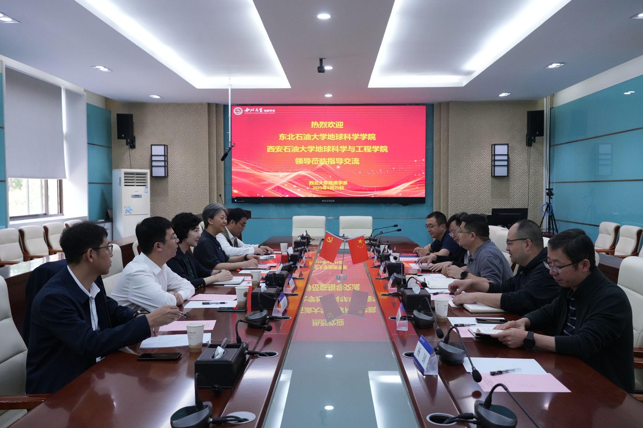 為深入貫徹落實黨的二十屆三中全會和全國教育大會精神,加強拔尖人才培養,4月25日上午,地球科學與工程學院黨委書記高黎、院長宋立軍,聯合東北石油大學地球科學學院調研組,赴西北大學地質學系開展“學科交叉賦能人才培養,黨建引領推動高質量發展”專題調研,聚焦新時代地質學科建設、拔尖創新人才培養體系構建及黨建業務深度融合等,進一步探討石油地學領域校際協同發展新模式。東北石油大學地球科學學院黨委書記韋丹寧、院長孫雨、副院長王海學,西北大學地質學系黨委副書記李政倫,副主任龍曉平、王建強、李青彥等參加會議。會議由西北大學地質學系黨委書記陳峰主持。