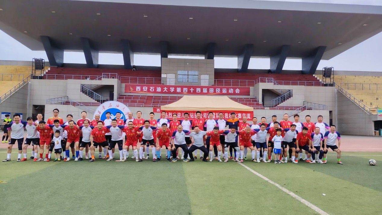 兩隊交換雙方隊旗后,隨著裁判員一聲哨響,川慶鉆探“雷霆隊”與西安石油大學教職工隊的友誼賽正式拉開帷幕。比賽中,雙方隊員攻守有序,配合默契:西安石油大學教工隊憑借精準長傳和靈活跑位頻頻制造威脅,率先打破僵局;川慶雷霆隊則以老練的控球技術和流暢的團隊傳導緊咬比分。經過90分鐘激烈角逐,雙方以4比4戰平,最終通過點球大戰為比賽畫上圓滿句號。賽場內外的歡呼與掌聲,不僅為精彩進球喝彩,更傳遞出校企雙方以球會友、攜手共進的深厚情誼。