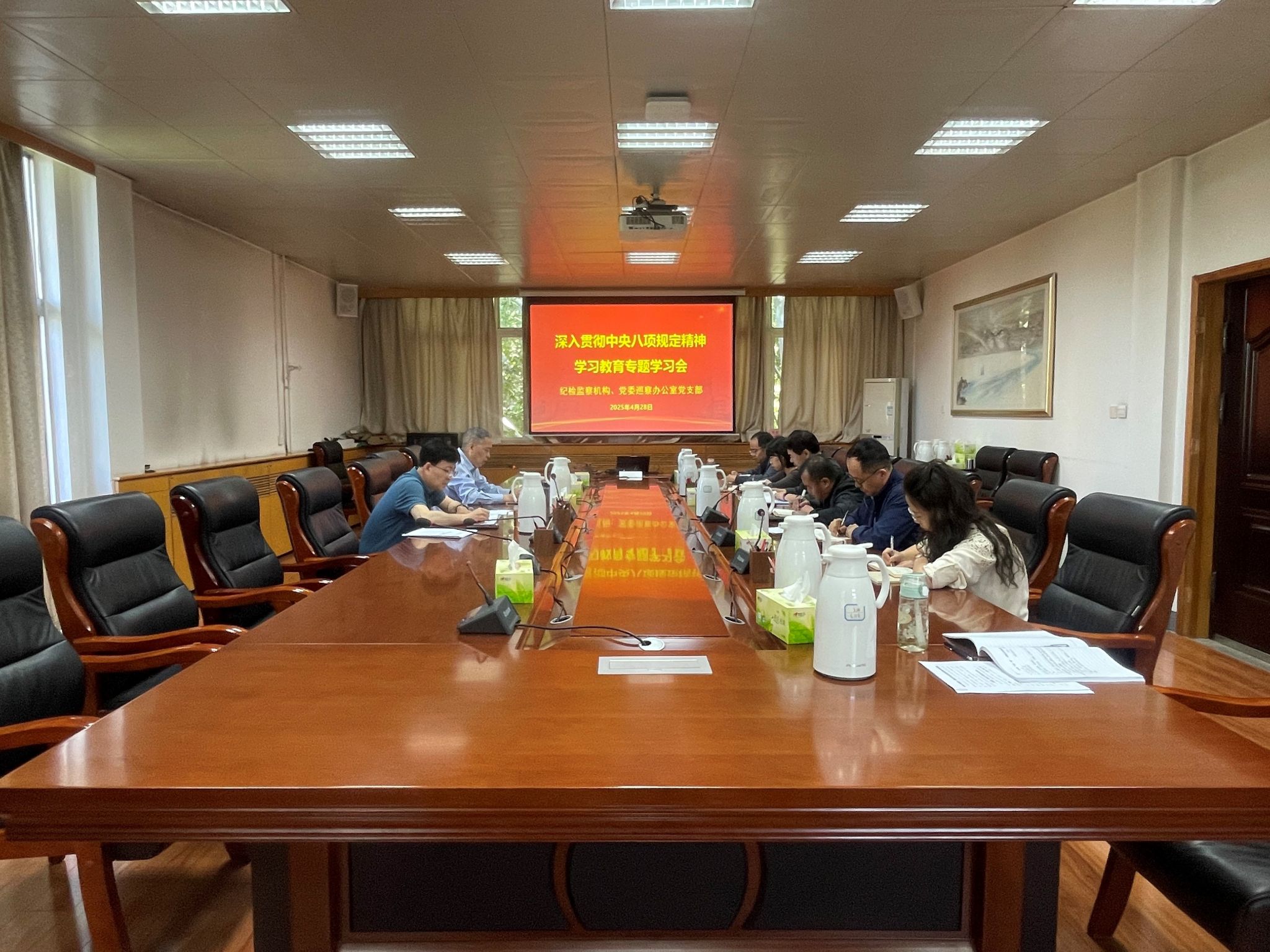 4月28日上午,紀檢監察機構巡察辦黨支部在辦公樓5樓會議室開展深入貫徹中央八項規定精神學習教育。會議由黨支部書記王宏衛主持,校黨委副書記、紀委書記、監察專員王輝強以普通黨員身份參加會議,黨支部全體黨員參加。