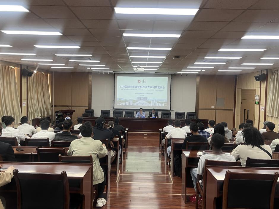 4月28日下午,國際教育學院邀請中石化重型起重運輸工程有限責任公司來校舉辦專場招聘會,會議在雁塔校區會議中心第五會議室舉行。公司運輸中心黨總支書記劉磊、工程師賈佳民,國際教育學院副院長黃愷、國際學生工作辦公室主任韓旭、學院全體輔導員以及50余名國際學生參加。