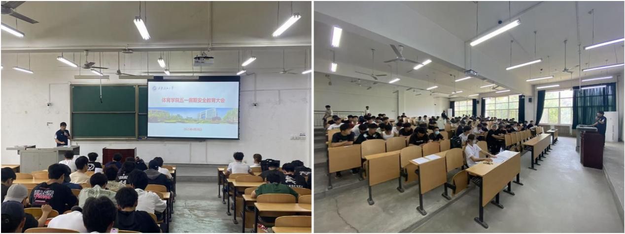 為深入貫徹落實學校安全工作會議精神,切實做好假期學生安全教育工作,4月28日下午,體育學院在博思樓B125教室召開五一假期安全教育大會,學院學工辦主任姜國平、輔導員老師張澤正及全體本科生參會。