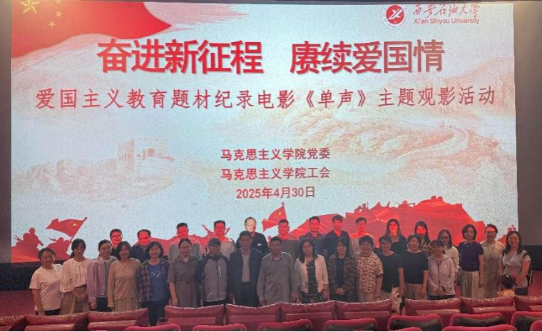 為深入學習貫徹黨的二十大精神,弘揚愛國主義精神,增強教職工的民族自豪感與責任感,4月30日下午,馬克思主義學院黨委、工會聯合組織學院教職工40余人觀看了愛國主義題材紀錄電影《單聲》。本次主題活動旨在通過生動的影像教育引導思政課教師堅定理想信念,強化使命擔當,將愛國熱情轉化為立德樹人的實際行動。