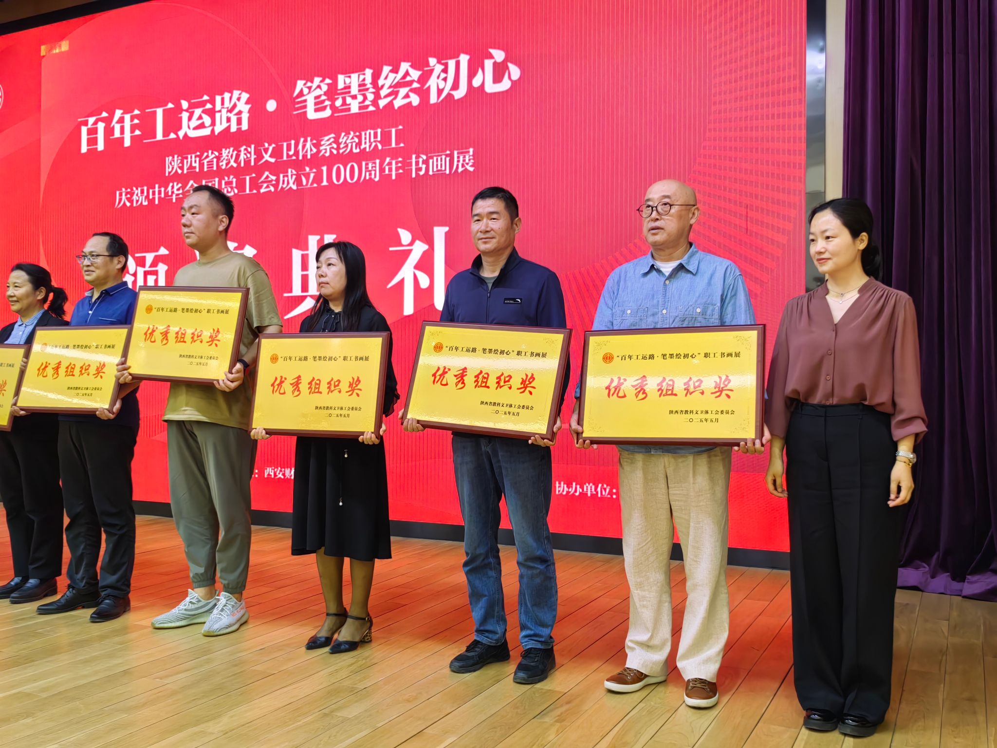 為慶祝中華全國總工會成立100周年,5月9日上午,“百年工運路·筆墨繪初心”陜西省教科文衛體系統職工書畫展在陜西省圖書館盛大開幕。