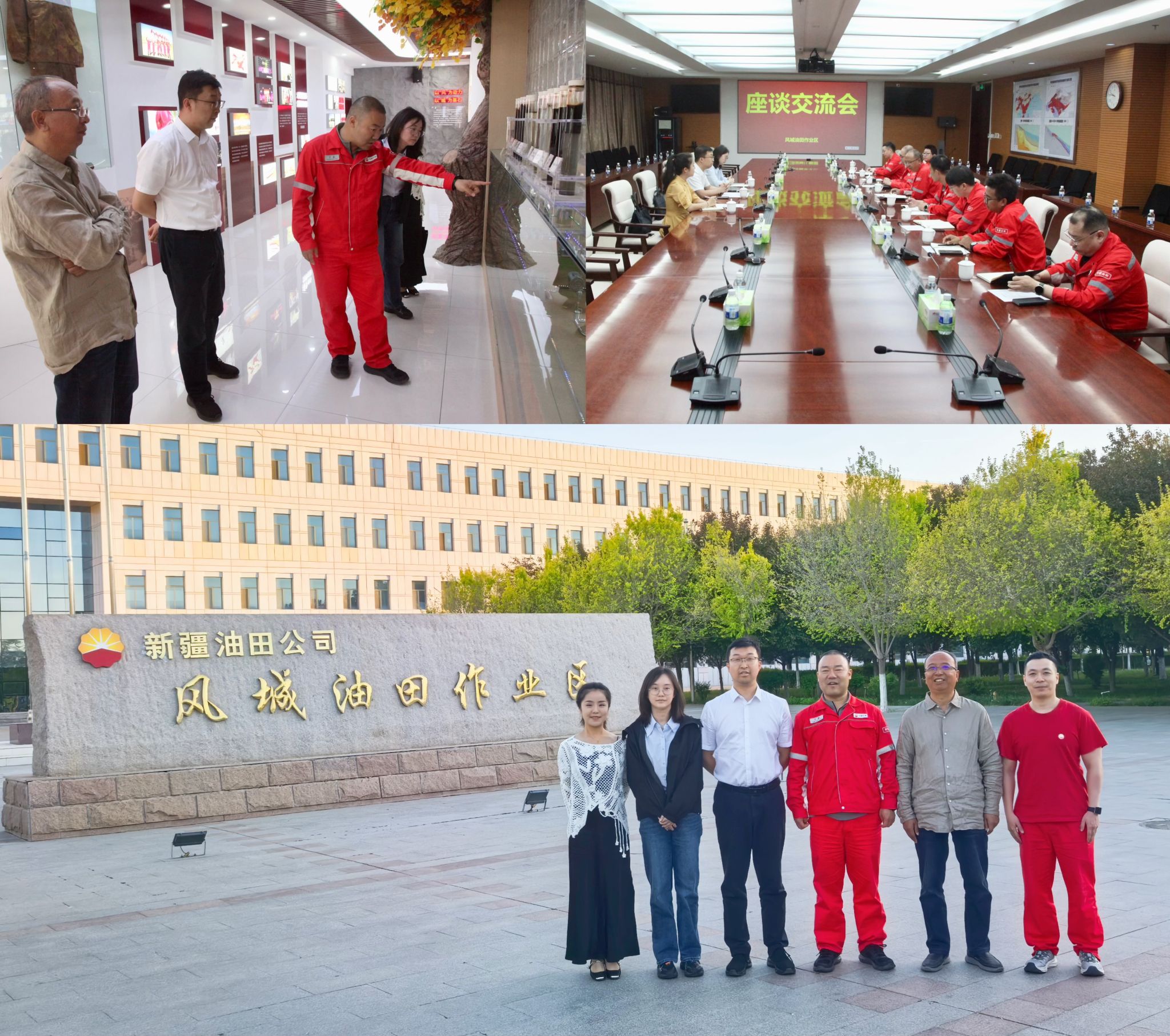 在風城油田作業區,副經理于淼系統介紹了風城油田作為國內最大超稠油生產基地的基本情況。一級工程師孫森、油田地質研究所副所長胡鵬程帶領參觀了SAGD先導試驗區,講解雙水平井注采工藝的關鍵技術突破。在交流座談環節,雙方就超稠油開發特色人才培養展開了深入討論,明確了企業對人才的專業素養提出的特殊要求,需要畢業生既掌握石油工程理論基礎,又具備現場工藝優化能力,同時還要熟悉數字化監測系統的操作應用。建議學院在培養方案修訂中積極探索校企共建前沿特色專業課程,通過更為系統全面的“理論教學+現場實踐”的培養模式,提升拔尖創新人才的工程實踐能力。