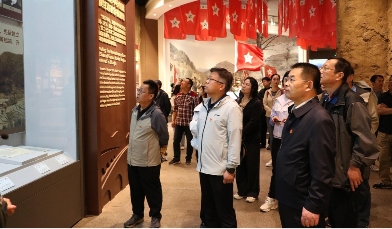 在位于慶陽市華池縣的南梁革命紀念館,全體黨員瞻仰革命烈士紀念碑,向革命烈士敬獻花籃,重溫入黨誓詞,追思革命先烈的豐功偉績。參觀荔園堡陜甘邊區蘇維埃政府舊址,學習陜甘根據地在中國革命事業中“兩點一存”的歷史性貢獻。參觀南梁革命紀念館新館,全方位、立體式學習了波瀾壯闊的陜甘邊區革命斗爭史,深切緬懷劉志丹、謝子長、習仲勛等老一輩無產階級革命家。參觀南梁廉政教育館,領悟提高黨性修養和廉政意識的重要性,接受思想洗禮。