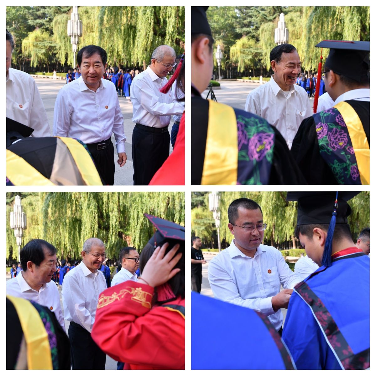 隨后,全體師生在東方石油樓前拍攝了畢業合影。畢業生們身著新款學位服,佩戴閃亮院徽,在鏡頭前留下了珍貴的青春記憶。畢業生們結合石油元素,以鐵人廣場、忠實廣場、春雨園為背景,用鏡頭記錄下這難忘的時刻。