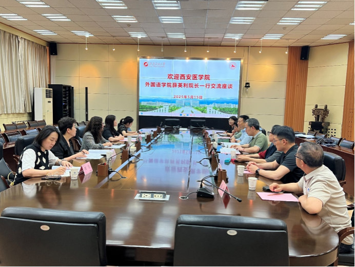 為加強校際合作、促進外語學科高質量發展,5月15日下午西安醫學院外國語學院院長薛英利一行5人蒞臨我校外國語學院座談交流。交流會在雁塔校區會議中心第二會議室召開。雙方學院黨政領導和骨干教師代表圍繞多個關鍵議題展開深入探討,共商行業院校外語學科建設新路徑。