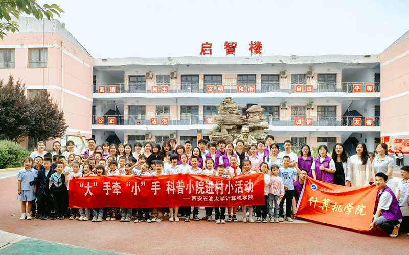 專業賦能鄉村振興,科技點亮報國夢想。2025年5月14日,計算機學院深入推進“一院一品”品牌實踐項目,組織開展“大”手拉“小”手——“科普小院”進村小活動,走進西安市鄠邑區兆豐橋小學。此次活動是高校通過科技賦能鄉村振興的生動實踐,由學院本科生和研究生共同組成志愿團隊,以“科技+教育+服務”的形式,助力鄉村基礎教育發展。