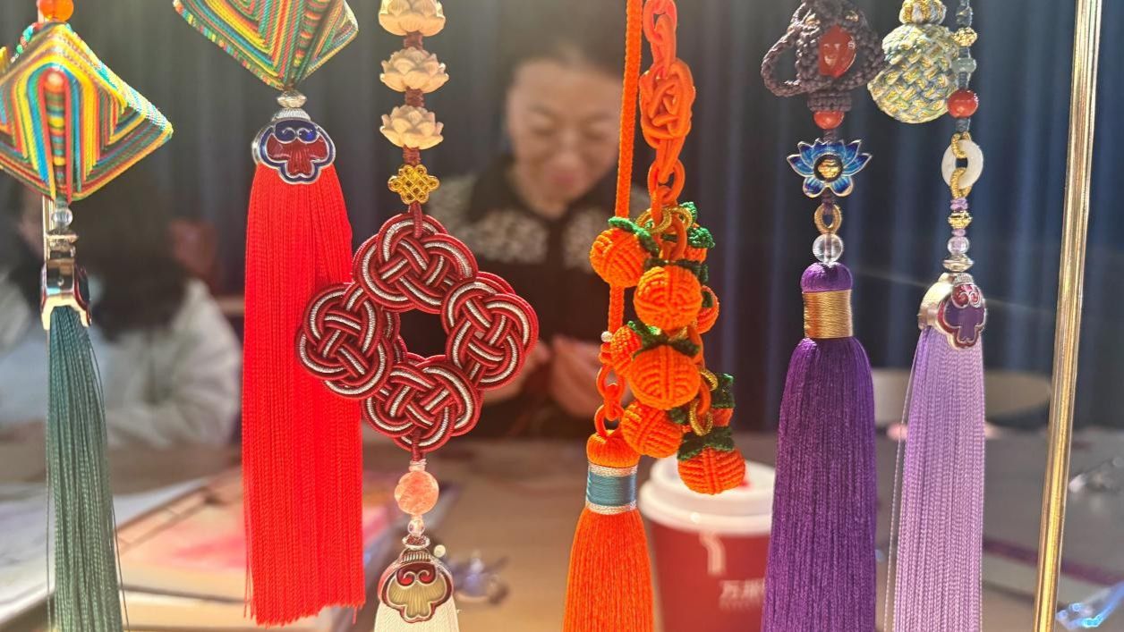 非遺體驗:巧手制作傳統書簽。活動最后,女教工們在非遺傳承人曾艷老師的指導下,親手制作手工繩結書簽。一絲一線間,大家既感受到傳統文化的精妙,也為閱讀增添了一份詩意與儀式感。“將親手做的書簽夾在書里,閱讀時會更珍惜時光。”地球科學與工程學院分會馬艷萍老師展示作品時感慨。