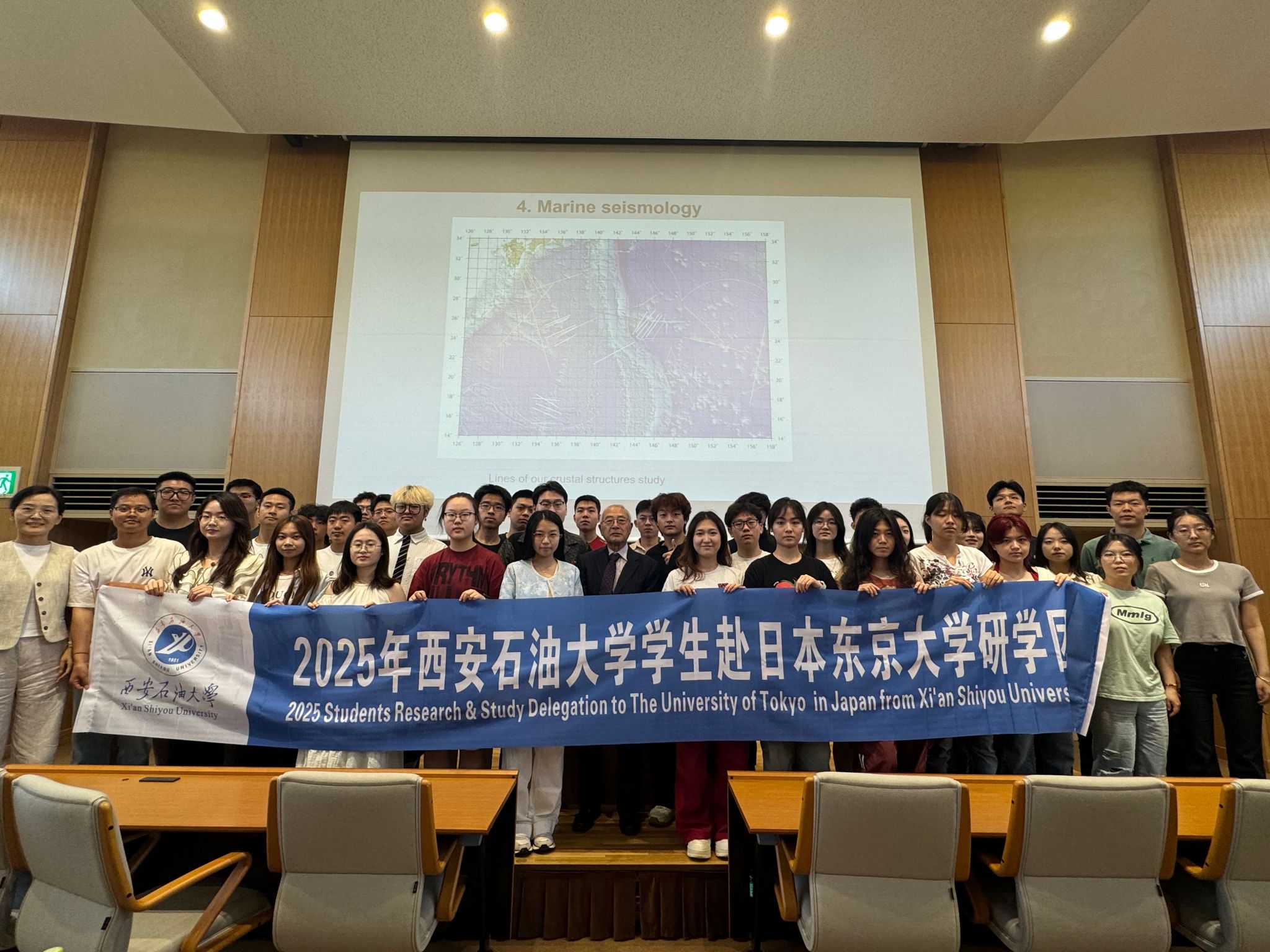 東京大學創立于1877年,是日本首所國立綜合性大學,享有“日本最高學術殿堂”的美譽,培養了眾多諾貝爾獎得主、政商界領袖及學術泰斗。研學首日,同學們在東京大學校園內聆聽了資源開發領域專家笠原順三教授的專題講座——《石油勘察的新技術與經濟推動》。笠原教授深入淺出地講解了當前石油勘探領域的最新技術突破,以及這些技術如何推動全球能源經濟的發展,同學們積極提問,現場互動熱烈。