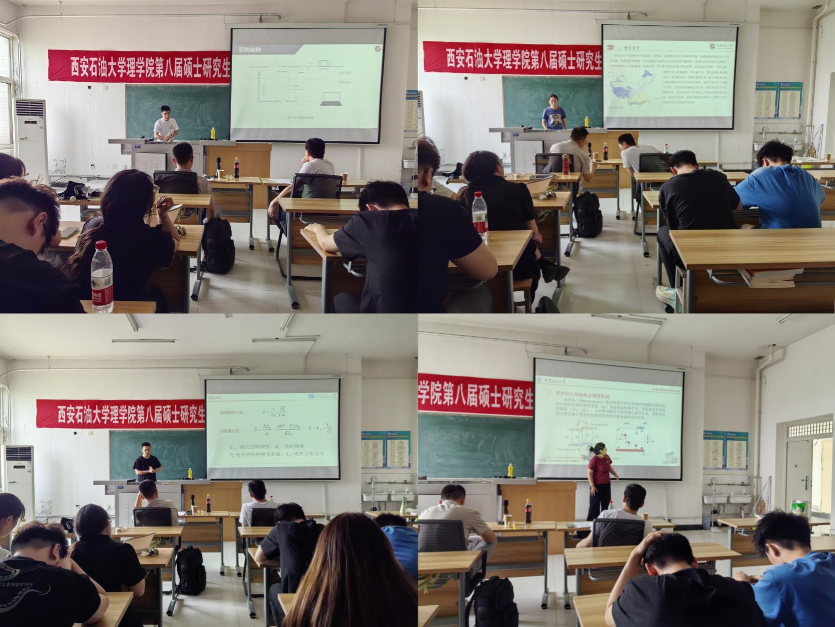 隨后,50位研究生分別就“短時傅立葉變換的原理和應用”、“激光陀螺儀精確追蹤地球自轉”、“柔性壓力傳感器的結構與性能研究”、“光纖側面集成超表面的二氧化氮濃度監測技術研究”、“環形激光干涉儀測量地球自轉速率變化”、“基于光纖光柵(FBG)傳感的凍土路基監測相關技術原理”等50個學術專題進行了交流分享。在本次分享會上,各位同學們圍繞著自己的研究課題,講述了自己的研究方向、方法及結果分析等方面,讓同學們深入了解了各個領域的研究進展。