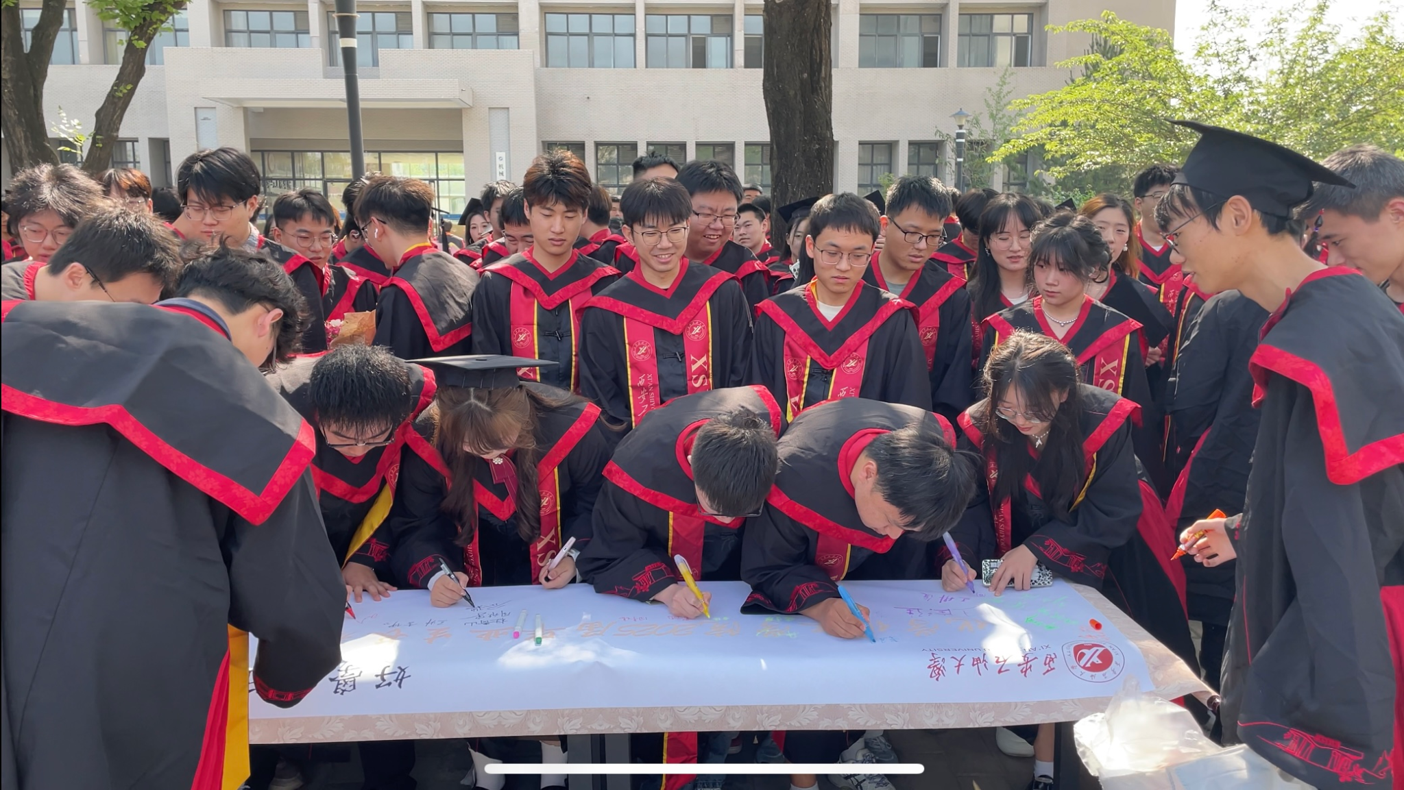 活動現場,長長的卷軸在廣場上徐徐展開,猶如一幅承載著青春記憶的畫卷。畢業生們紛紛拿起筆,在卷軸上鄭重簽下自己的姓名,一筆一劃,飽含著對母校的深深眷戀,也定格了大學時光的珍貴瞬間。