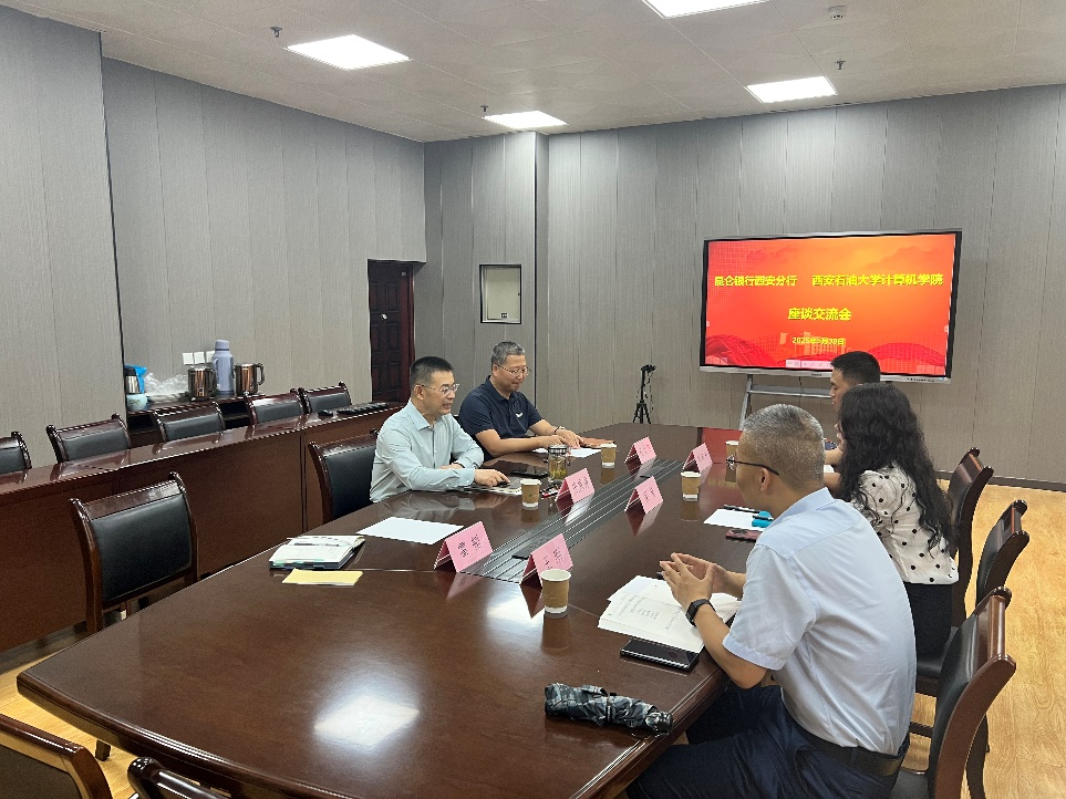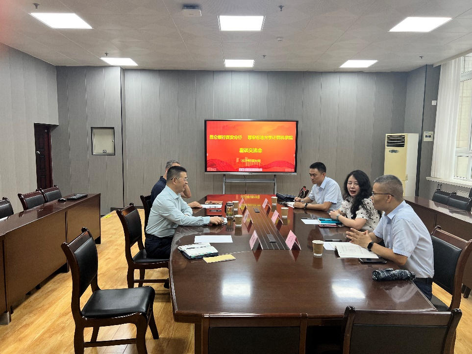 計算機學院黨委書記龐秉謙對梁瑩副行長一行的再次到訪表示熱烈歡迎。他表示,西安石油大學與昆侖銀行同根同源,計算機學院的學科專業與昆侖銀行的主體業務需求高度契合,學院在人工智能、大數據、網絡安全等方面科研優勢可以很好支撐昆侖銀行數智化發展,人才培養體系與昆侖銀行的員工培訓和人才招聘密切關聯。希望雙方加強在黨建聯建共建、員工培訓、員工學歷提升、學生實習實踐、科技成果轉化等方面的全方位合作,不斷完善合作機制、提升合作層次,推動校企合作邁上新臺階。