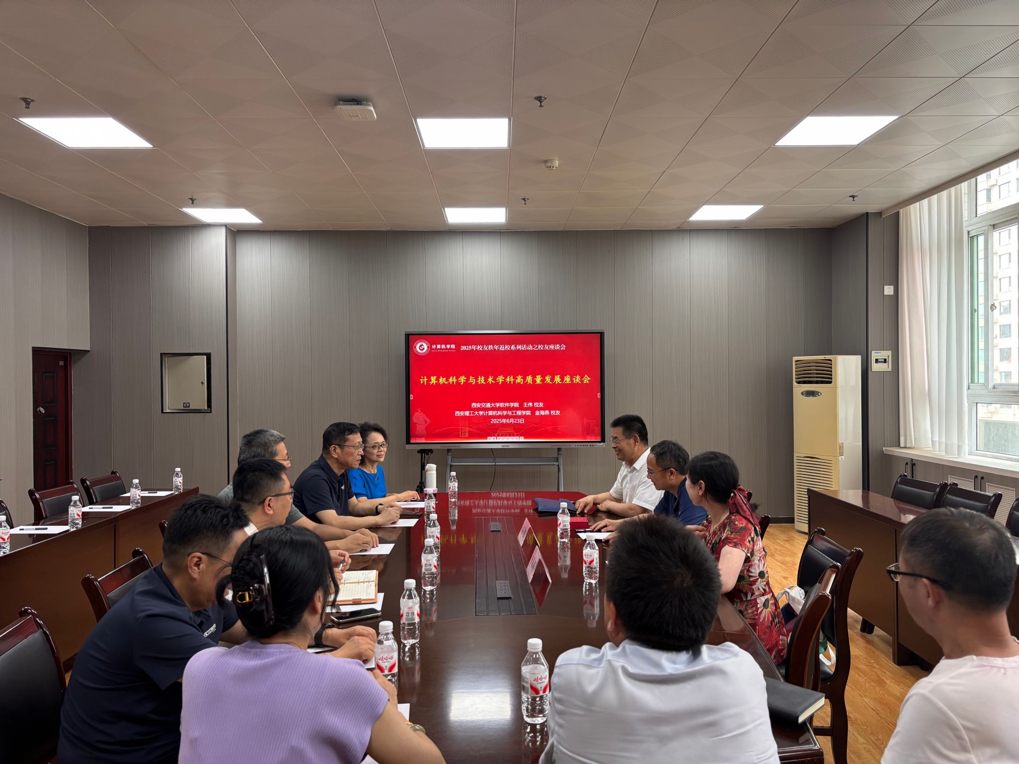 6月23日下午,計算機學院在雁塔校區東方石油樓404室舉辦2025年校友秩年返校系列活動之校友座談會。學院邀請教育部重大人才工程特聘教授、西安交通大學軟件學院院長、博士生導師、我校93級校友王偉教授,西安理工大學計算機科學與工程學院副院長、博士生導師、我校95級校友金海燕教授來校座談交流。學院班子成員、教授委員會委員和系主任參加。學院黨委書記龐秉謙主持座談會。