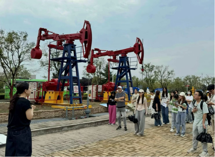 6月18日,全體學生來到長慶油田西安油氣綜合實訓基地,開啟“外語+石油”實踐教學。在油田實訓區,學生通過模擬鉆井平臺、抽油機等設備觀摩石油開采全流程;氣田實訓區的天然氣凈化裝置模型前,技術人員用中英雙語講解井口作業原理。實訓中,學生在油氣加工區觀察蒸餾塔模型演示原油提煉,于鉆井作業區觸摸真實鉆桿部件,更在數字化培訓室通過智能監控系統模擬操作英語指令。基地創新創效展室的員工技術成果展示,讓學生深度感受石油行業的創新文化與實踐精神,實現語言能力與能源行業知識的跨界融合。