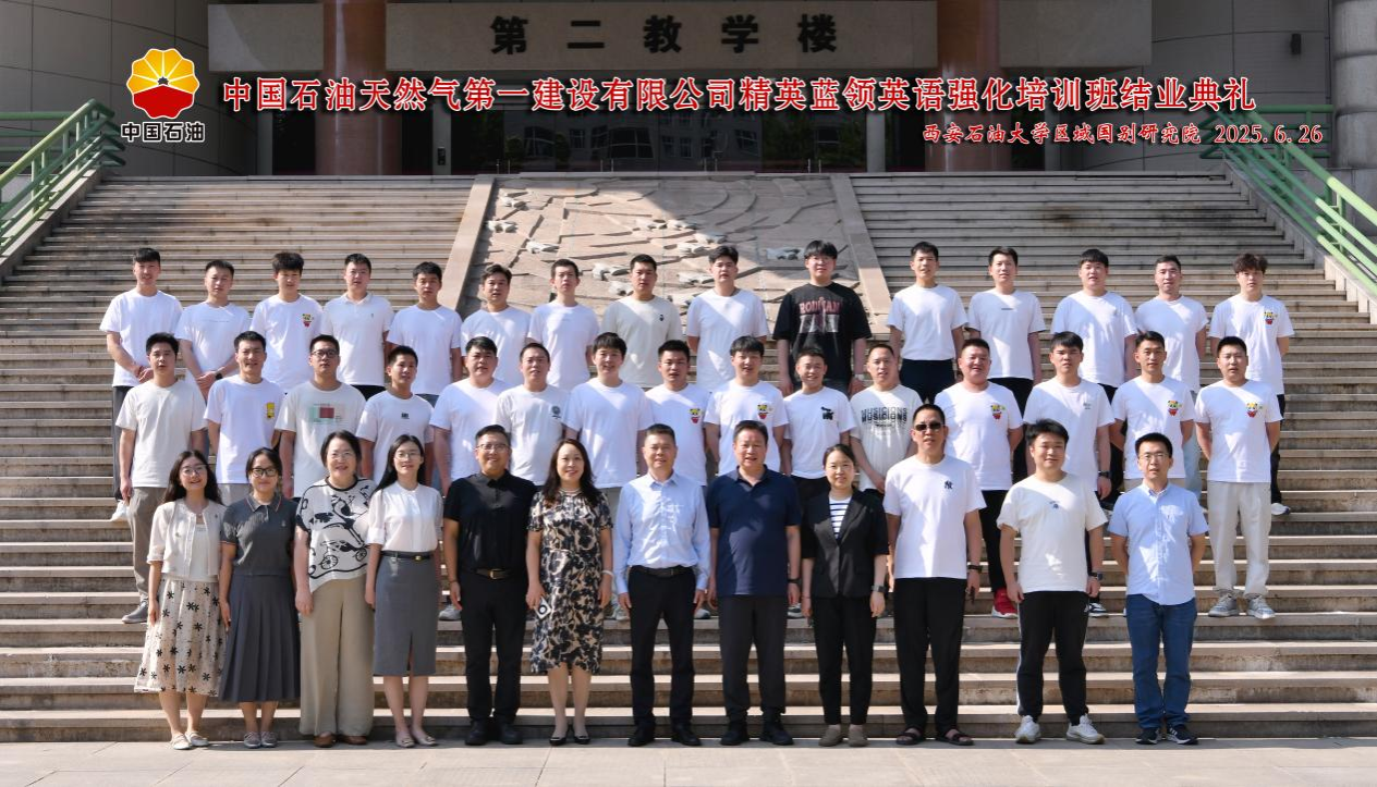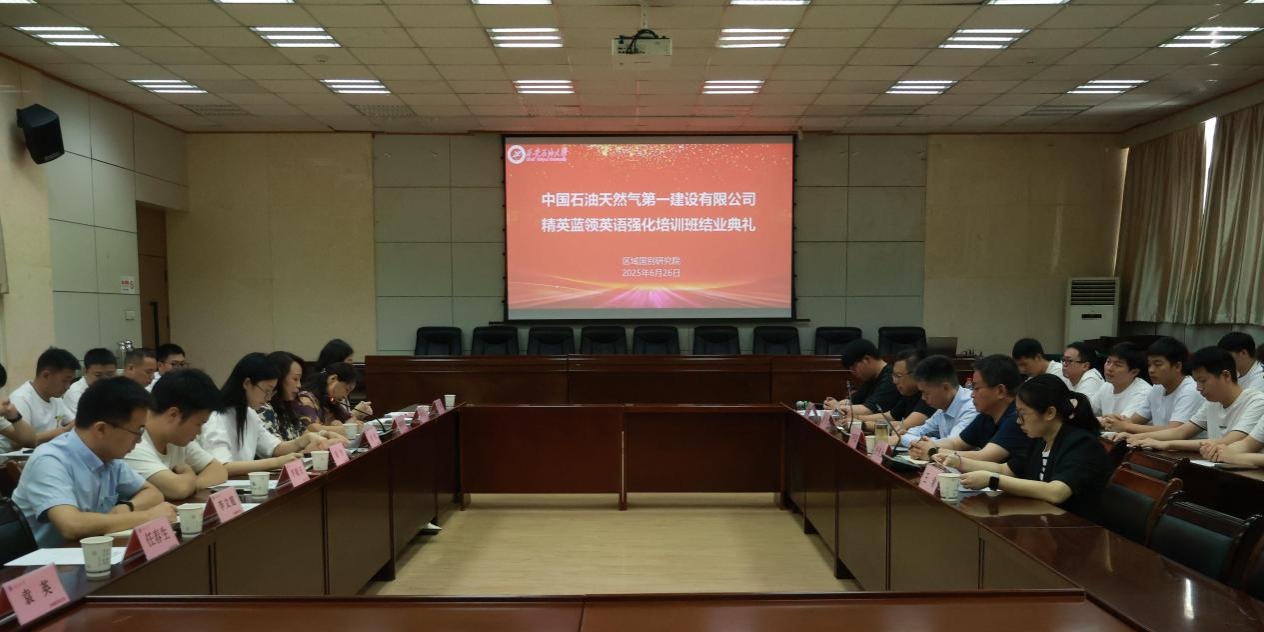 6月26日下午,區域國別研究院在雁塔校區會議中心第三會議室舉辦了中國石油天然氣第一建設有限公司“精英藍領”國際化能力培訓班結業典禮。中國石油天然氣第一建設有限公司總經理助理劉明國、總經理助理兼國際事業部經理張俊生、人力資源部副經理王瑜、員工培訓主管唐波、區域國別研究院執行院長劉輝、培訓班部分任課教師和全體學員參加了結業典禮,結業典禮由區域國別研究院辦公室副主任陶李主持。