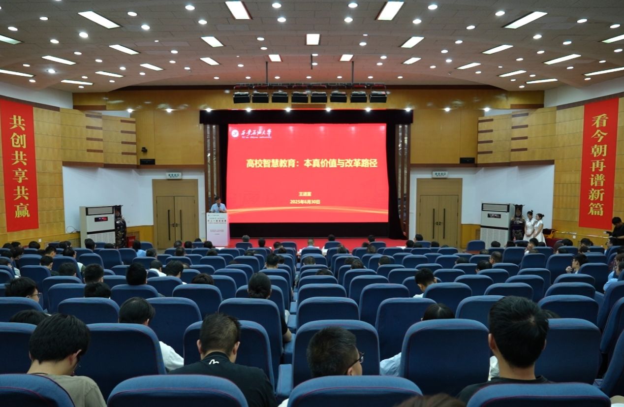專題黨課強作風,智慧賦能育新人。在專題黨課環節,王進富以《鍥而不舍落實中央八項規定精神 推進作風建設常態化長效化》為題,系統闡述開展學習教育的重大意義和中央八項規定精神的核心要義,深入剖析作風建設的新形勢新要求,強調以高度的政治自覺和行動自覺推進作風建設,切實把紀律要求轉化為日常習慣,持續營造風清氣正的校園政治生態。在講授思政課時,王進富以《高校智慧教育:本真價值與改革路徑》為題,從“怎么想、怎么看、怎么干”三個層面展開深入闡釋,為師生帶來了一場深刻的思想啟迪。他強調,智慧是教育的永恒追求,智慧教育為實現這一追求創造條件,是回歸教育本真的關鍵。當前高等教育面臨深度轉型,地學發展尤為重要,智慧教育成為全球共識且已具備實施基礎,教育主體亟需主動變革。要堅定數智賦能,通過重塑智慧辦學新理念、構建智慧辦學新體系、構建智慧辦學新校園、升級智慧教育新環境、構建智慧教育新范式、促進智慧管理新體系,建設以學生為中心、以教師為根基、有感情有溫度的智慧西石大,不負智能時代與育人使命。