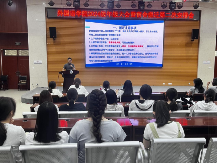 6月15日、7月2日,學工辦副主任、2024級輔導員陳浩召開兩次年級大會,詳細安排宿舍搬遷事宜,并解答學生疑問。