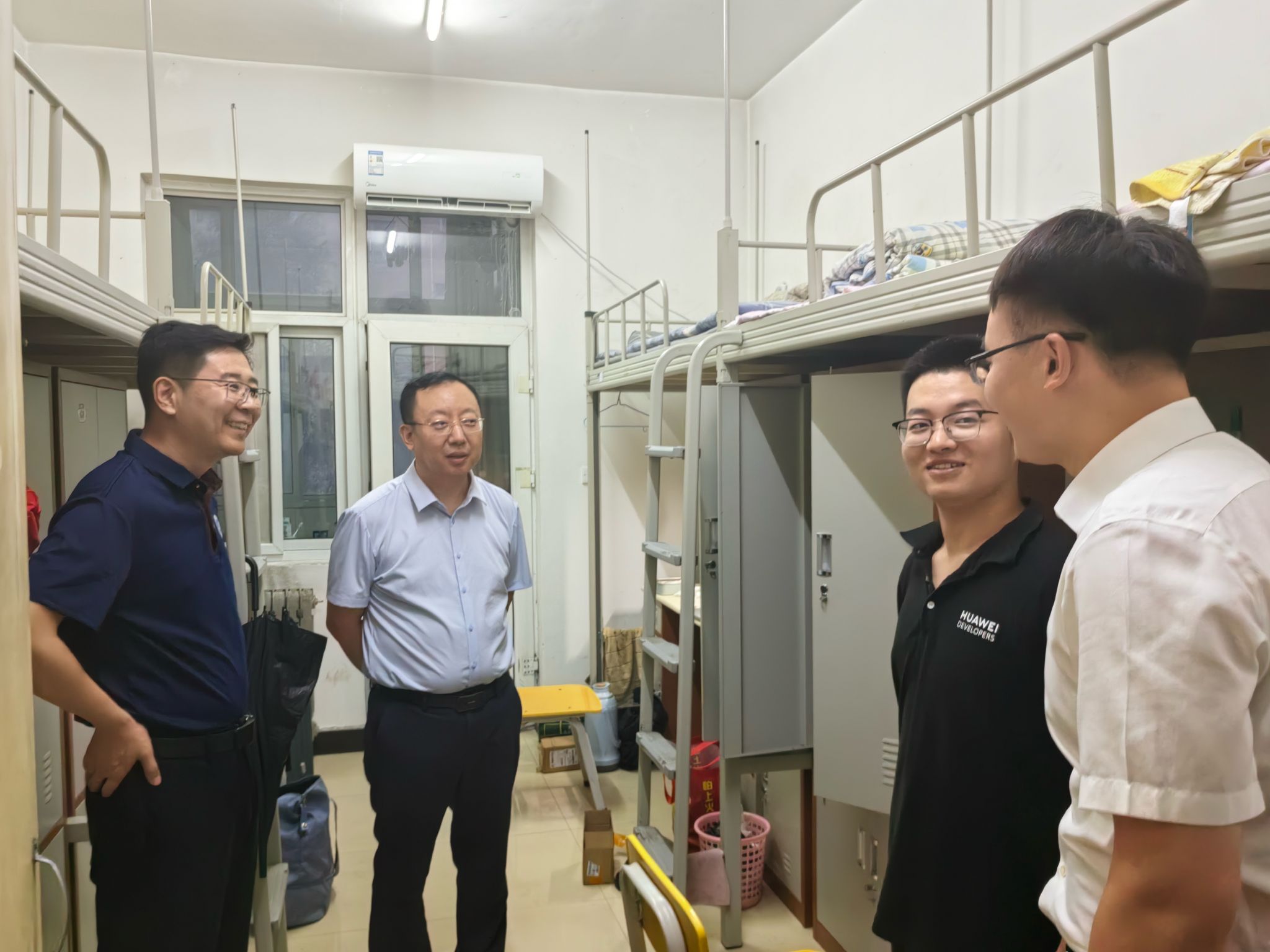 為進一步了解學生入住情況,幫助同學們盡快適應新環境,學生工作部(處)相關負責人和學工干部多次深入學生宿舍,看望慰問正在收拾內務的同學們,詳細了解同學們搬遷后的生活安排與住宿感受,詢問大家在新環境中是否存在困難,并鼓勵大家保持良好心態,積極投入到接下來的學習與生活中。