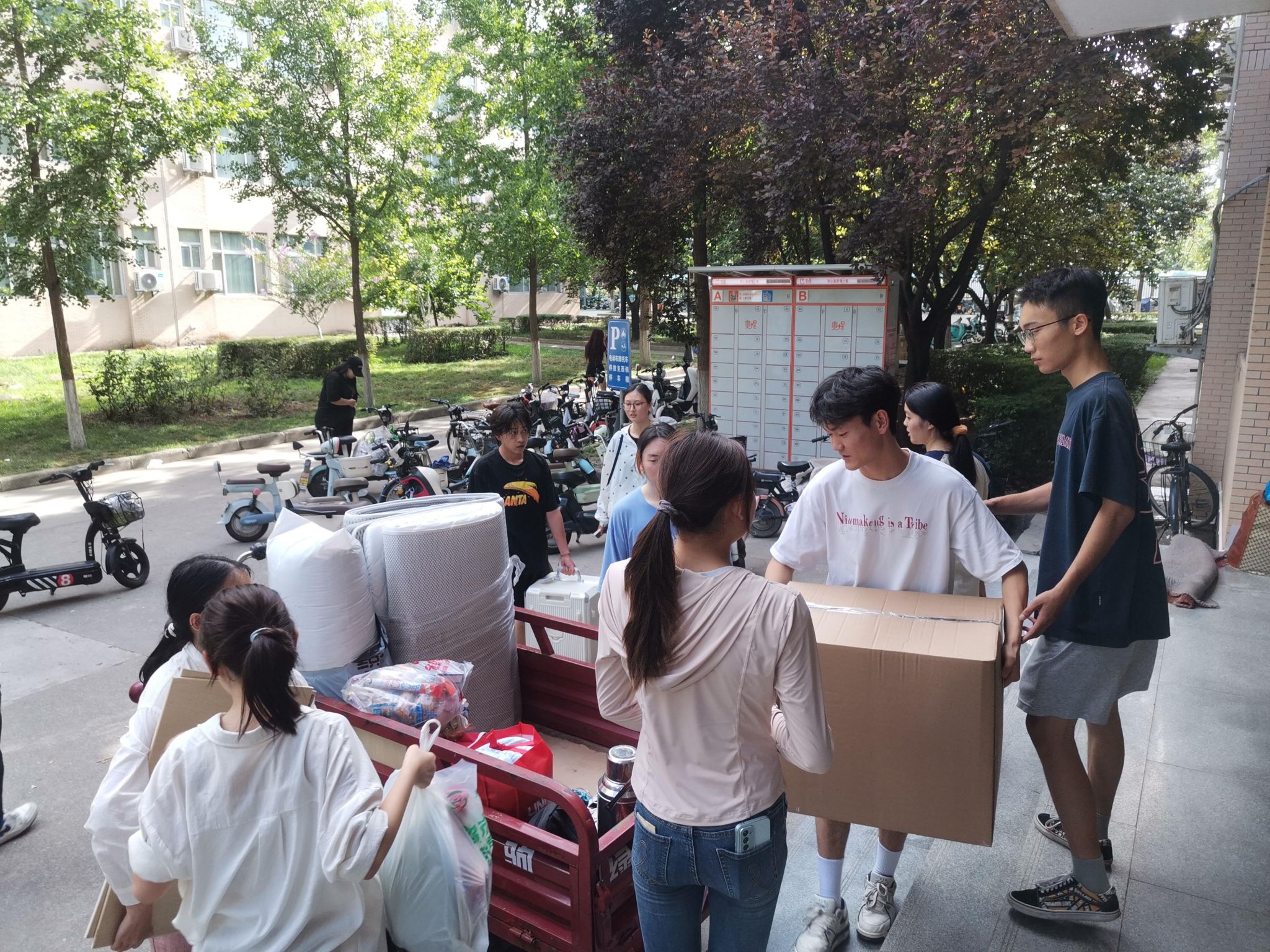 學校共租賃16輛搬運車幫助同學搬遷,現場設置“免費飲用水供應點”、“醫療服務點”、“解暑綠豆湯”供應點等暖心舉措。各院(系)分別通過召開學生搬遷動員會、學生干部會議、成立搬遷工作志愿服務隊等形式,深入了解學生需求,聚焦解決學生關切的困難和問題,為順利搬遷奠定了基礎,搬遷現場到處充滿著溫馨和諧的氣氛。