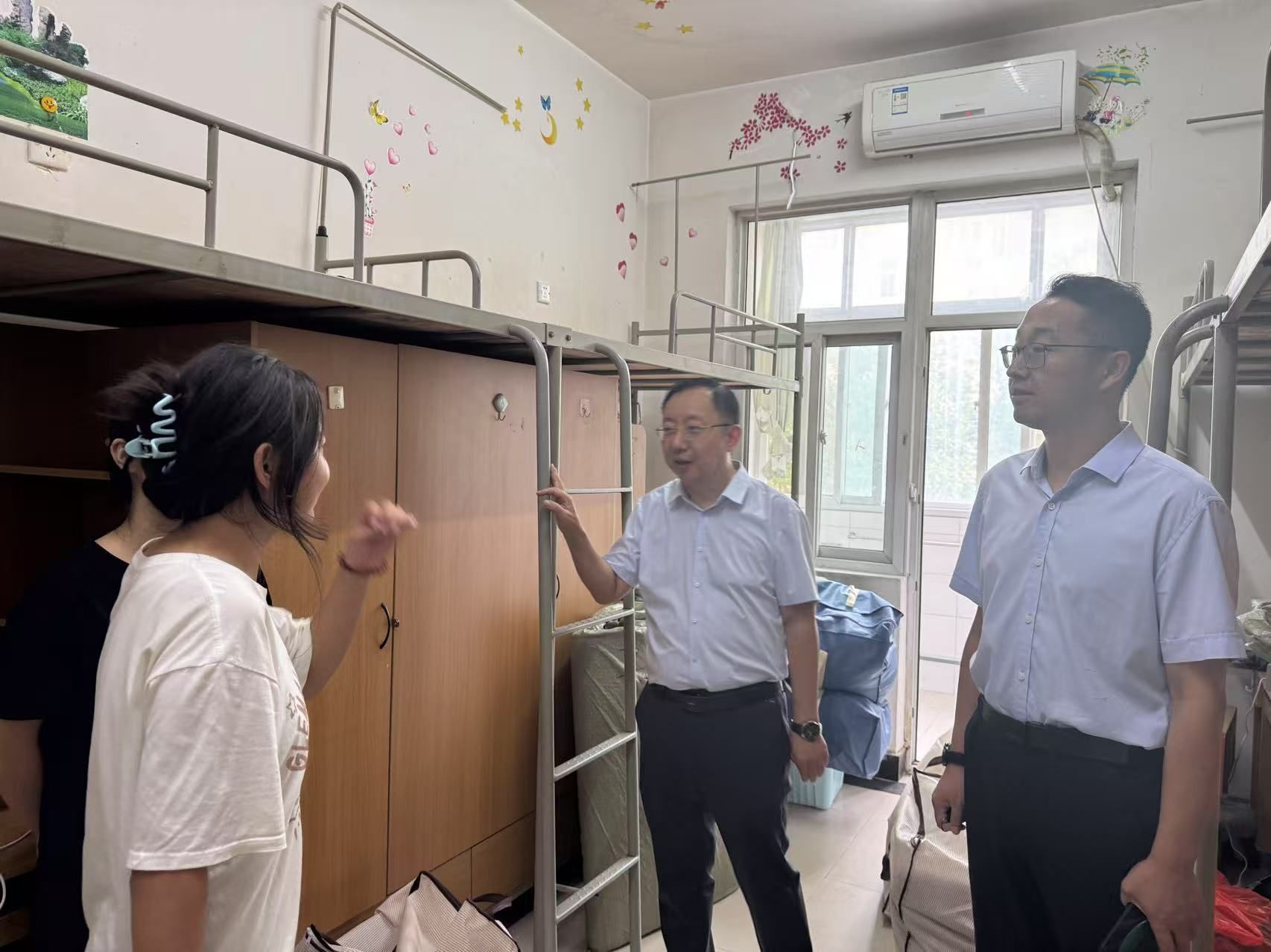 副校長種宇宏帶隊深入搬遷現場,實地指導搬遷工作,詳細了解搬遷進度,關心學生實際困難,及時協調解決搬遷中的各種問題。他強調學生宿舍搬遷不僅是空間的轉換,更是校園服務品質提升、優化育人環境的重要契機。他要求各單位以此次搬遷為抓手,聚焦學生需求,持續完善后續服務保障,從宿舍設施維護到生活配套優化,都要做到精細入微,真正將 “以生為本” 的理念落到實處。