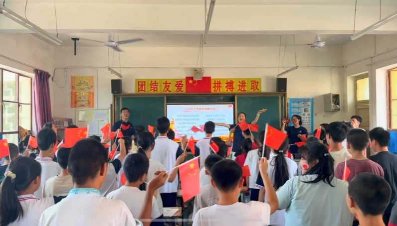 實踐團成員以西安事變為切入點,為4所學校近200名中小學生講授了一堂生動的愛國主義教育課。課堂創新采用“雙師教學+多媒體沉浸”模式,主講教師通過展示歷史影像資料,生動還原西安事變全過程;課程還穿插了即時問答環節。在課堂最后,輔助教師組織學生集體合唱紅色歌曲《沒有共產黨就沒有新中國》,深化了孩子們的愛國情感。