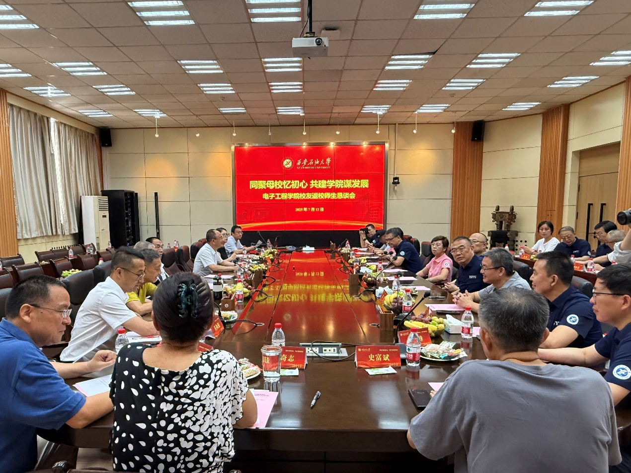 7月12日,在學校隆重舉行2025年校友秩年返校共謀高質量發展大會之際,電子工程學院在雁塔校區第二會議室召開了“同聚母校憶初心 共建學院謀發展”2025年校友秩年返校師生懇談會。副校長趙健出席會議,學院黨委書記潘娜、副院長任志平、教師代表、返校校友共計40余人參加會議。學院黨委副書記芮執根主持懇談會。