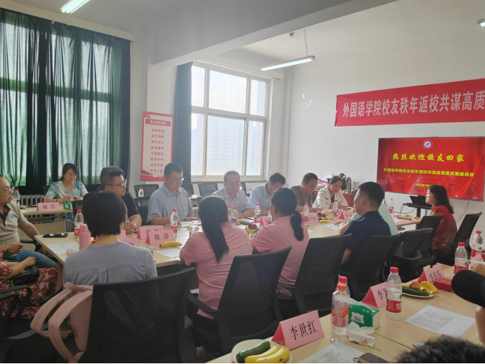 7月12日,外國語學院在雁塔校區華油能源樓727會議室召開2025年校友秩年返校共謀高質量發展座談會。學院黨委書記張建高,副院長陳武,外國語學院2005屆、2008屆、2012屆、2015屆15余名校友代表和學院教師代表,學院綜合辦、學工辦、教學辦負責人參加會議。會議由學院黨委副書記邱嶺主持。