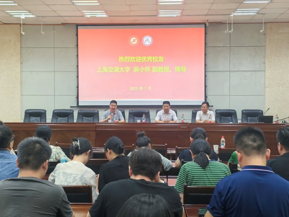 7月11日,材料科學與工程學院迎來了一場意義非凡的學術交流活動,學院91級優秀校友、上海交通大學副教授、博導薛小懷重返母校贈書并作2026年國家自然科學基金項目申請交流報告。贈書儀式和報告會由劉德學院長主持,學院黨委書記耿嶺、青年教師及碩士生代表80余人參加了贈書儀式和報告會。