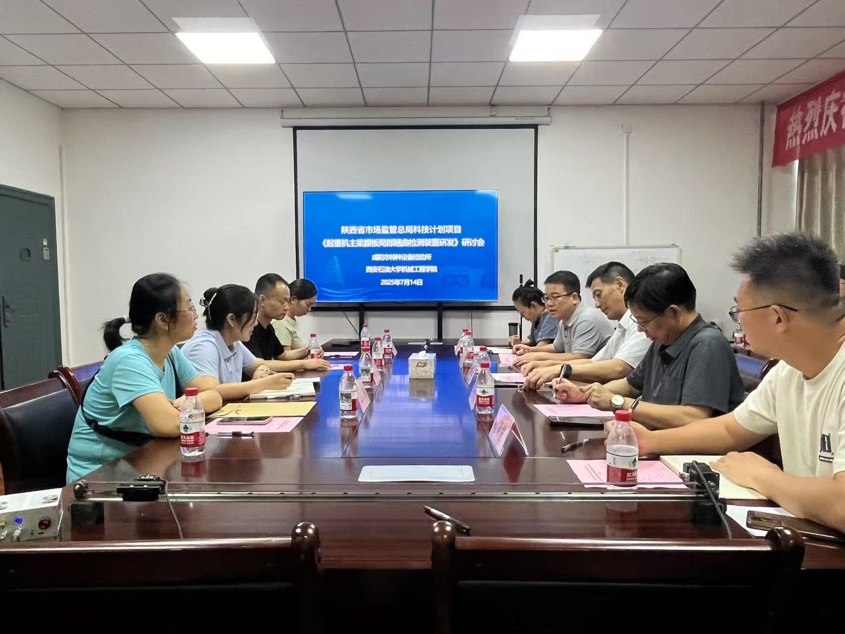 7月14日下午,咸陽市特種設備檢驗所副所長楊敏一行4人來訪機械工程學院調研,并就聯合申報的陜西省市場監管總局科技計劃項目“起重機主梁腹板局部翹曲檢測裝置研發”開展技術交流。機械工程學院黨委書記孟開元、新能源學院副院長王治國和機械工程學院部分教師代表參會,會議由學院機電工程系副主任賀雨田(項目合作負責人)主持。