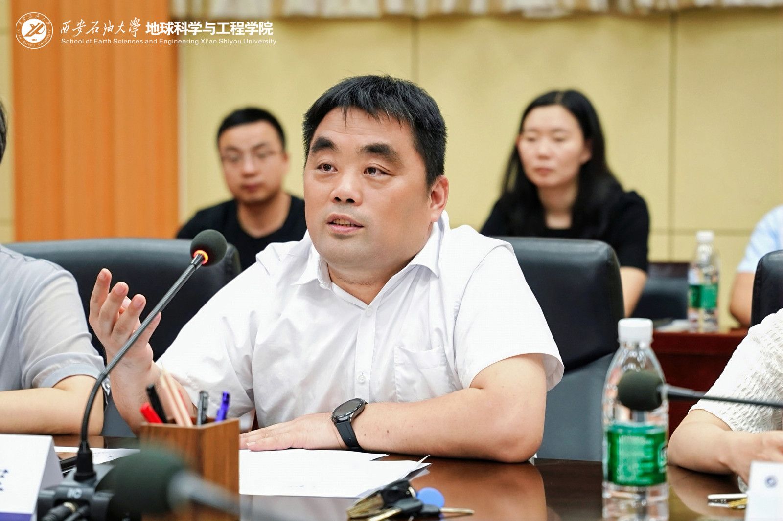 7月12日中午,地球科學與工程學院于雁塔校區會議中心第二會議室舉辦2025年秩年返校師生座談會。學院黨政領導高黎、宋立軍、王瑩、黨偉,學院學生管理辦公室前主任、外國語學院黨委副書記邱嶺,教師代表趙靖舟、張鳳奇、郭峰、趙衛衛,各辦公室主任及全體輔導員等有關工作人員,同學院2005屆、2015屆校友代表等30余人參加座談,共敘師生情誼,共商發展大計。會議由學院黨委書記高黎主持。
