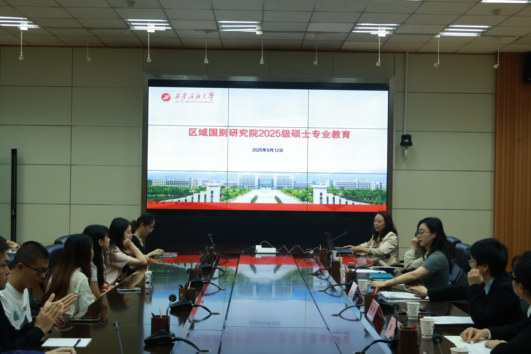 9月12日上午,區域國別研究院在雁塔校區會議中心第二會議室舉辦2025級區域國別學碩士研究生開學典禮暨入學專業教育。研究院執行院長劉輝、區域國別學碩士研究生導師以及2025級研究生新生參加會議。會議由研究院陶李主持。