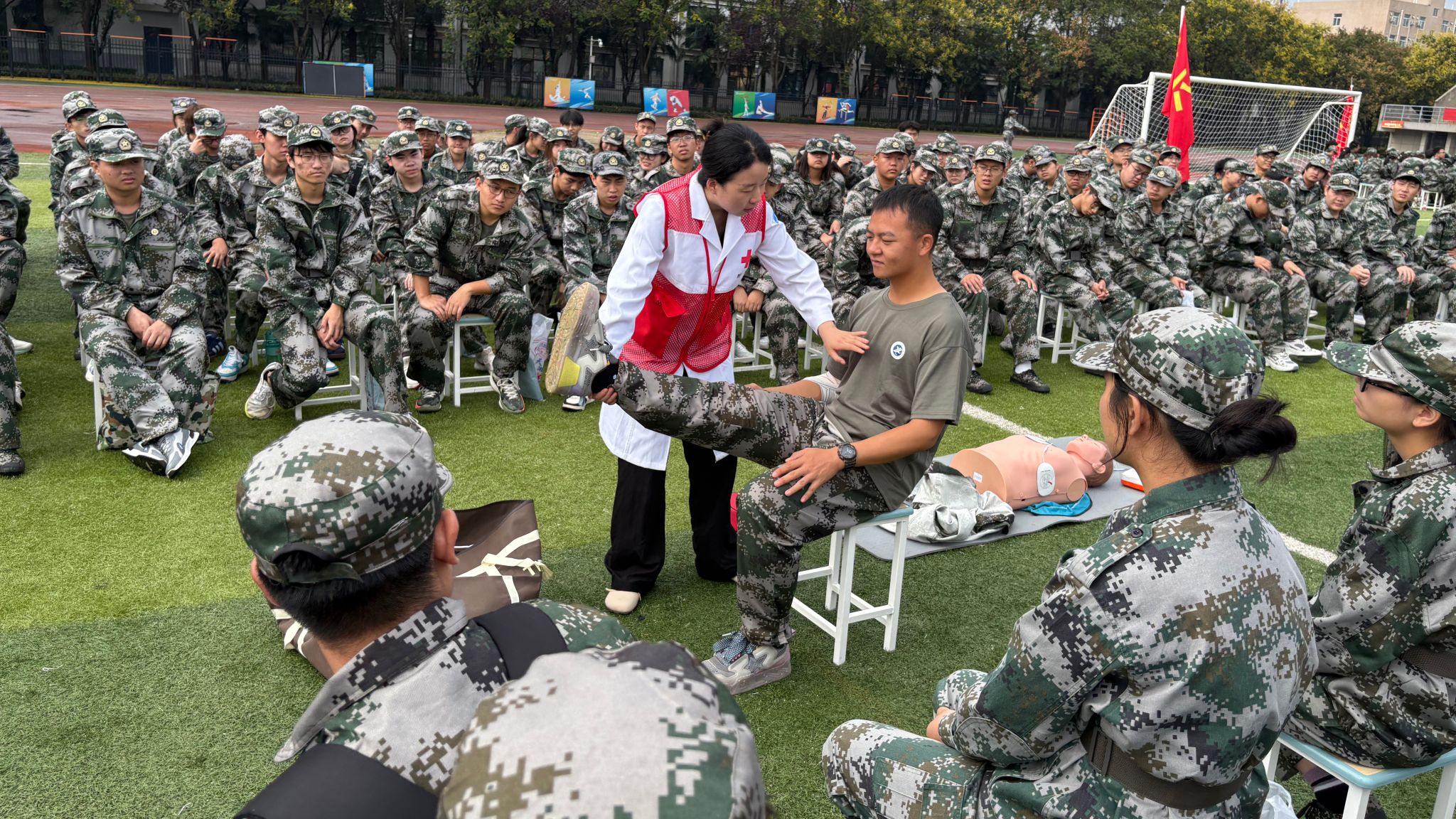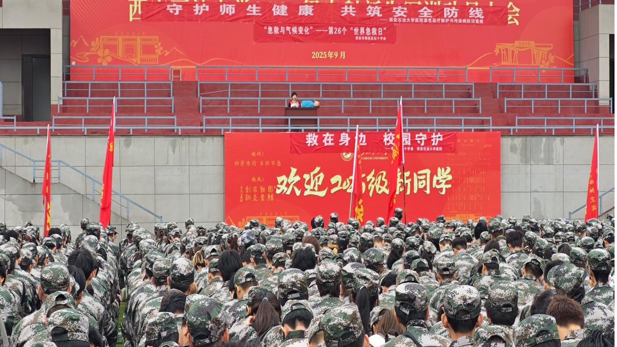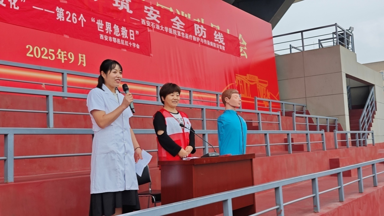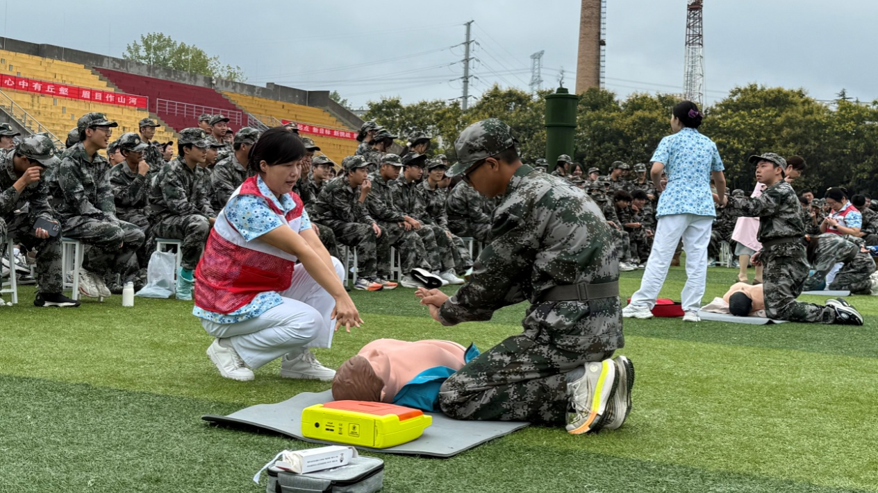 在9月13日第26個“世界急救日”(今年主題為“急救與氣候變化”)到來之際,為助力2025級新生平穩適應大學環境,系統提升其健康防護意識與突發事件應對能力,9月12日,學校武裝部、校醫院攜手鄠邑區紅十字會、鄠邑區疾病預防控制中心,在鄠邑校區東操場聯合開展應急救護培訓、傳染病防治講座及醫保政策科普系列活動。作為新生入學教育的“關鍵第一課”,活動緊密對標學校“全國第三批急救教育試點學校”建設目標,深度踐行“人人學急救,急救為人人”的理念,結合“急救與氣候變化”主題,著力構建系統化、多維度的校園健康保障機制。