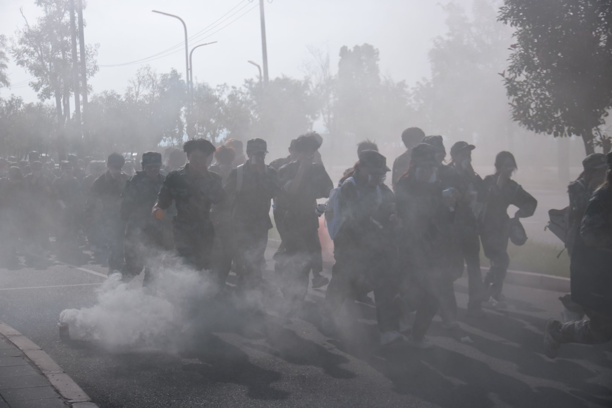 為提升訓練實效,軍訓旅在行進過程中設置6項演練內容:常行軍訓練、隊形變換訓練、“傳遞口令” 訓練,“敵機偵察過頂”處置、“通過50米煙火染毒地帶”以及“通過100米煙火炮火封鎖區”演練。參訓新生嚴格按照要領完成任務,全程由情況導調組統籌協調,各連隊教官與干部密切配合,確保演練有序開展。