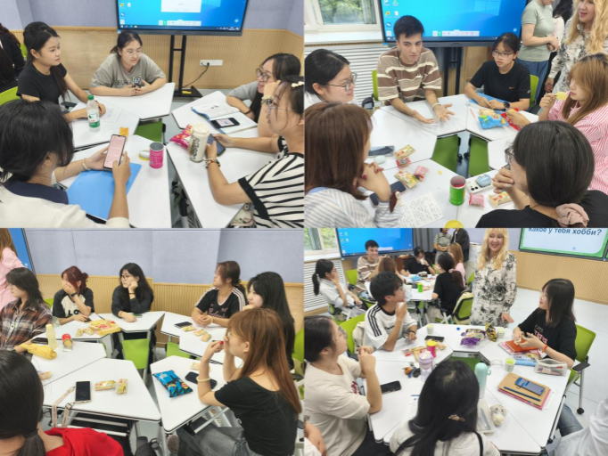 主題討論環節,學生們根據興趣自主分組,圍繞“興趣愛好的培養與發展”、“中外興趣文化差異”等話題展開深入交流。交流過程中,學生們積極嘗試俄語對話,兩位外教古力娜拉、斯威特蘭納老師全程巡回指導,針對學生的語言表達問題及時糾錯、耐心講解,有效幫助學生提升語言運用的準確性與流暢度。各組討論結束后,紛紛選派代表上臺分享交流成果,學生們的精彩發言贏得現場陣陣掌聲,充分展現了我院學子良好的外語素養與精神風貌。最后全體參與人員合影留念,為本次活動畫上圓滿句號。
