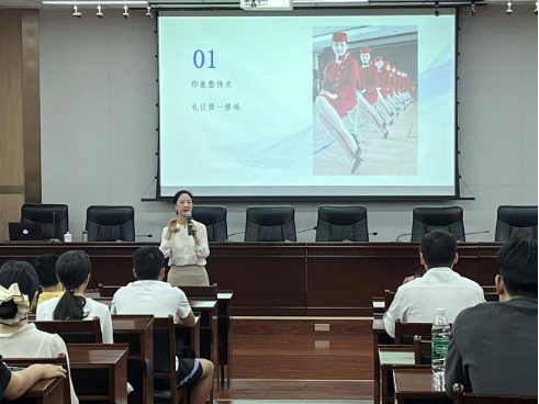 常靜教授圍繞“舉止禮儀與文化應用”這一主題,通過理論講解、案例分析和現場互動等多種形式,系統講解了禮儀在日常生活、職場面試等各種場景中的具體應用。她結合自己多年在禮儀培訓與空乘專業教學中的經驗,從形象管理、言行舉止、溝通技巧等多個維度進行了生動細致的解讀,并針對研究生群體的實際需求提供了具有操作性的建議。參會研究生紛紛表示,此次培訓內容實用、形式生動,對提升個人形象意識、增強表達與溝通能力具有積極的促進作用。