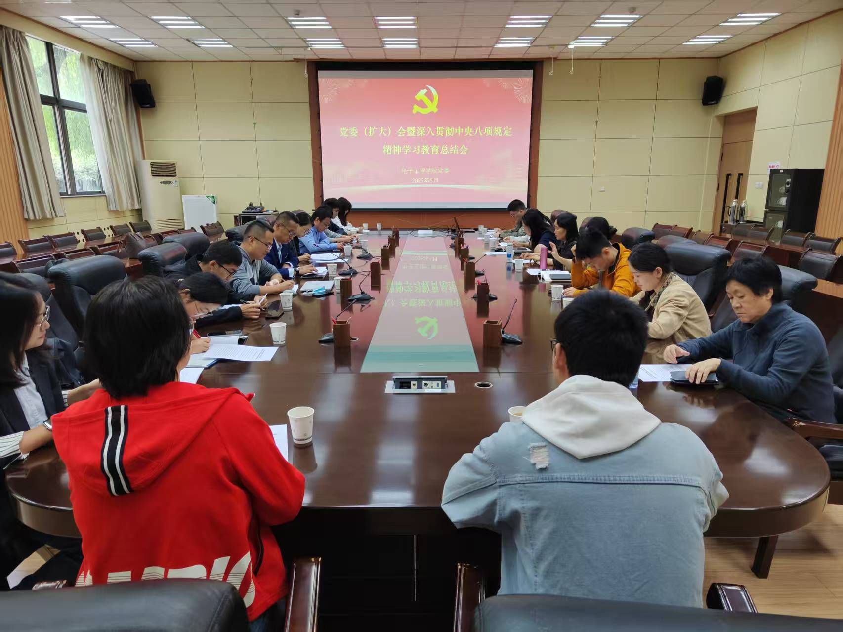 9月19日下午,電子工程學院黨委(擴大)會暨深入貫徹中央八項規定精神學習教育總結會在雁塔校區第一會議室召開。學院黨委委員、領導班子成員、各辦公室主任、各教研室黨支部書記、本科生黨支部書記及研究生黨支部書記參加會議,會議由學院黨委書記潘娜主持。