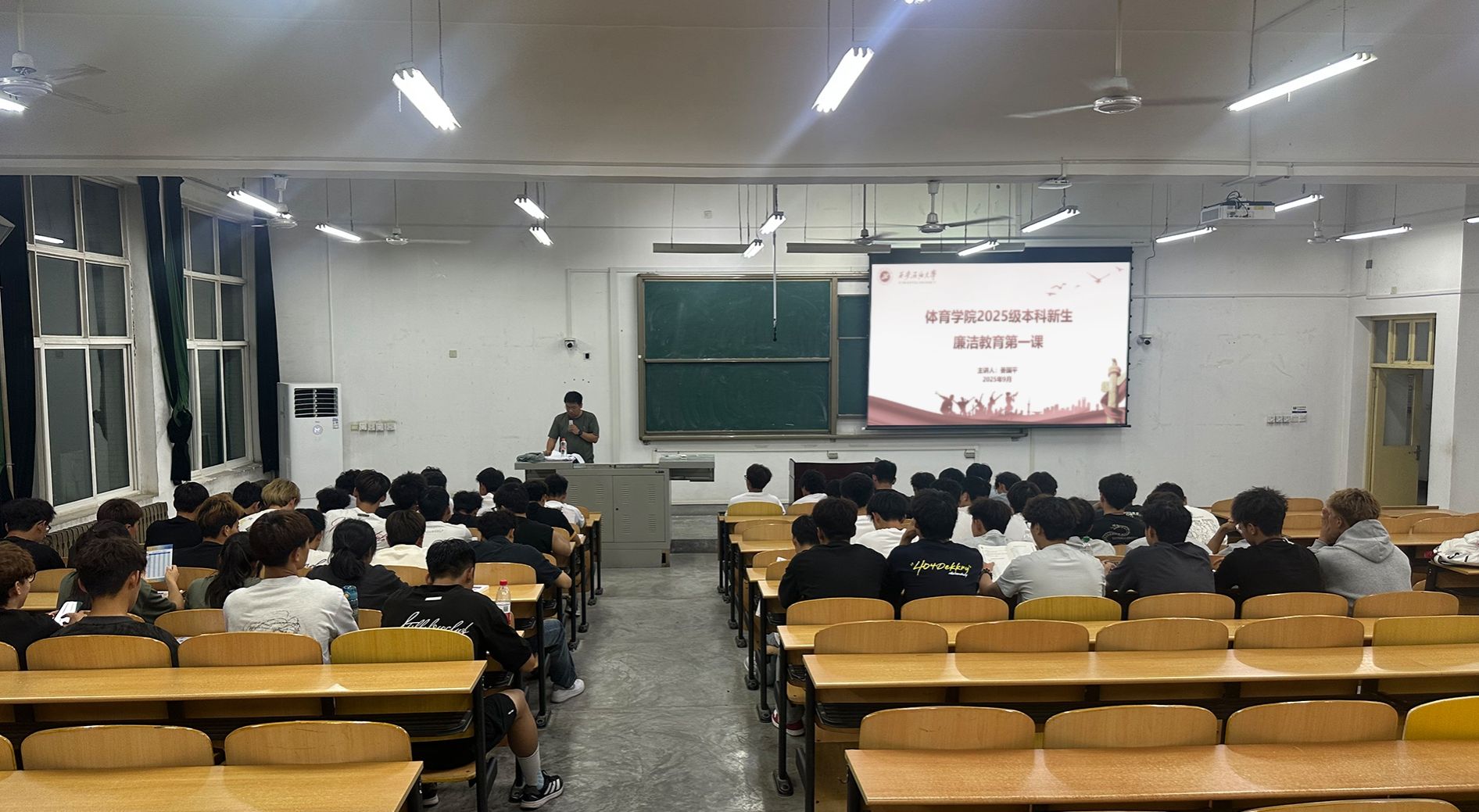 姜國平以“廉潔文化的歷史傳承”為切入點,向同學們介紹了廉潔為何與青年相關、廉潔文化的當代啟示、大學生廉潔教育的現實挑戰以及大學生如何踐行廉潔自律等。同時結合專業特色,通過運動員選拔公平性、賽事執裁紀律等案例,剖析職業場景中的廉潔風險點,強調“反興奮劑原則”“訓練規則遵守”等要求,引導新生理解“廉潔求學”與體育精神的深層關聯,深化對學術誠信、競賽公正等理念的認知。