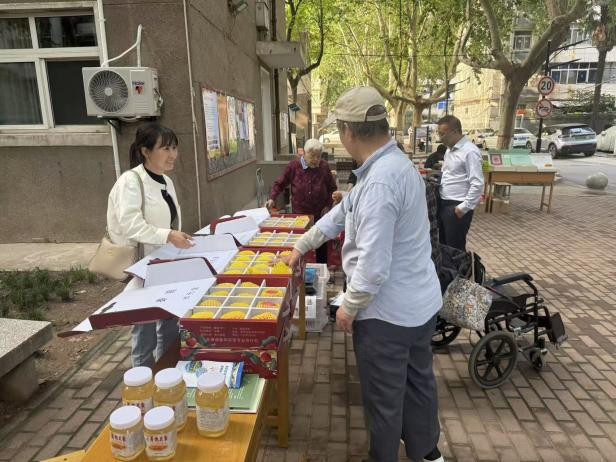 在展銷現場,秦脆蘋果、槐花蜜、手工醋、核桃油、掛面、非遺槐花餅等二十余種永壽特色農副產品集中亮相,吸引眾多教職工及家屬駐足選購。由掛職駐村干部嚴格把關、精心挑選的產品,以其綠色健康、品質優良、價格實惠的特點廣受好評。掛職駐村干部、展銷商戶現場講解產品特點和當地特色,幫助大家在選購商品的同時,了解幫扶地區的產業發展與人文風貌。