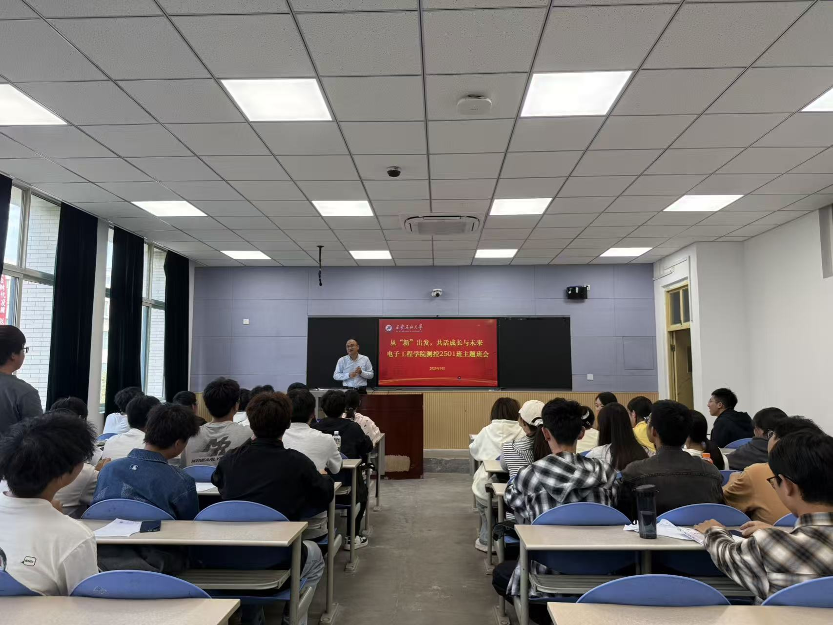 為深入了解新生學習生活適應狀況,抓實推進“三全育人”工作落地見效,9月29日下午,校黨委委員、副校長趙健走進鄠邑校區博覽樓215室電子工程學院新生班會現場,與其兼任班主任的測控2501班全班同學共話成長與未來,并以《融入新集體,啟航新征程——與新同學談談如何有意義地度過大學四年時光》為題講授專題思政課。