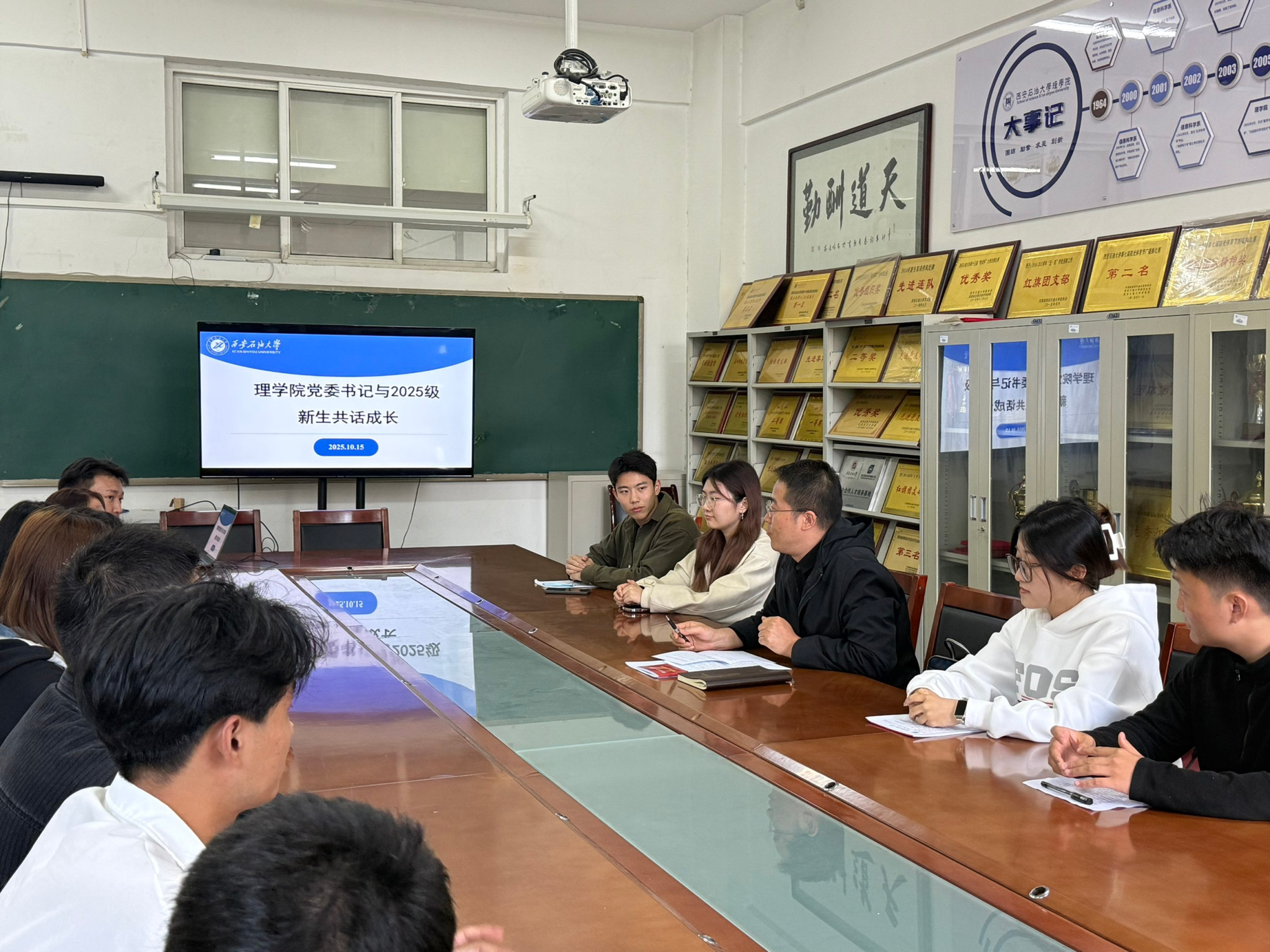 在10月15日舉行的首期“生涯規劃坊”活動中,理學院黨委書記席利哲以“成長領航,共話未來”為主題,與學院2025級8個班的學生代表進行了親切交流。