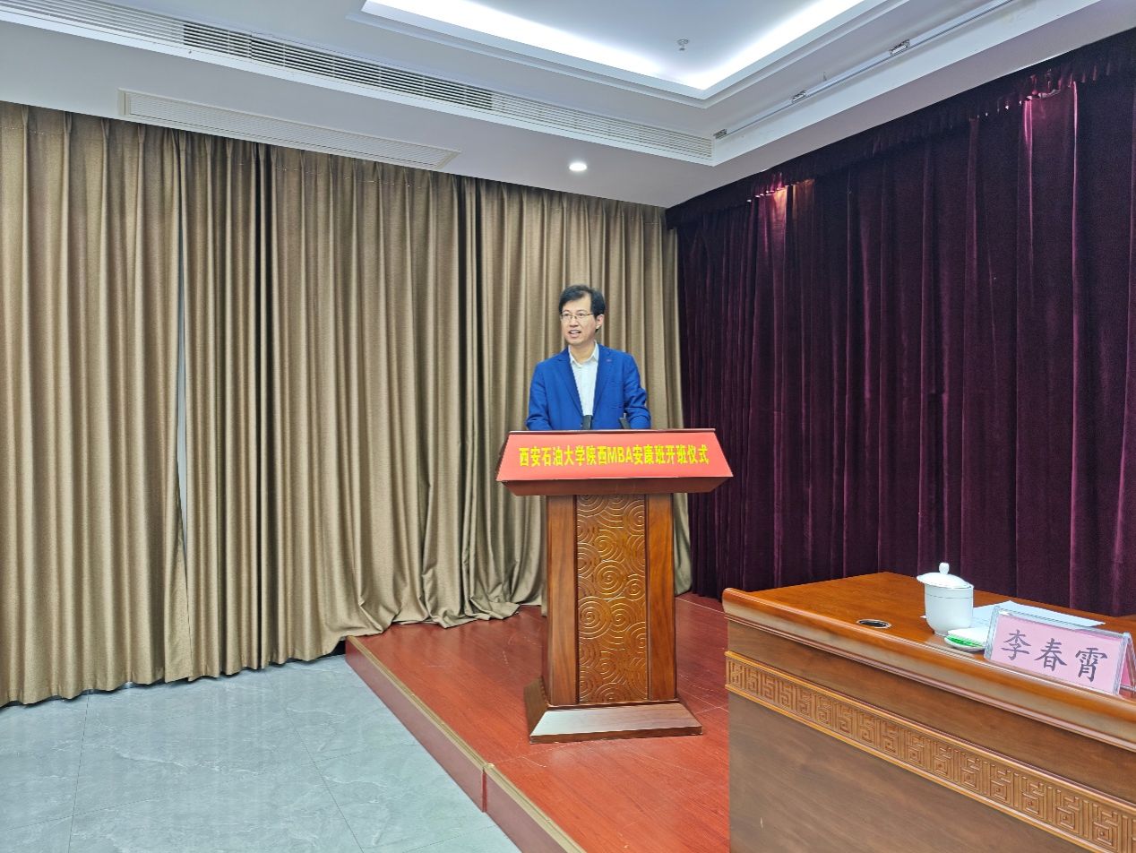 李春霄代表學院全體MBA授課老師,向加入西安石油大學經濟管理學院大家庭的新同學,表示最誠摯的祝賀和最熱烈的歡迎。他希望同學們能將豐富的實踐經驗、獨特的人生閱歷進一步升華,通過學習解決同學們真實的管理困惑,通過教學相長,碰撞出思想的火花。為此,全體教師將秉承“立德樹人、執行合一”的理念,做好同學們求學路上的“引路人”與“同行者”。