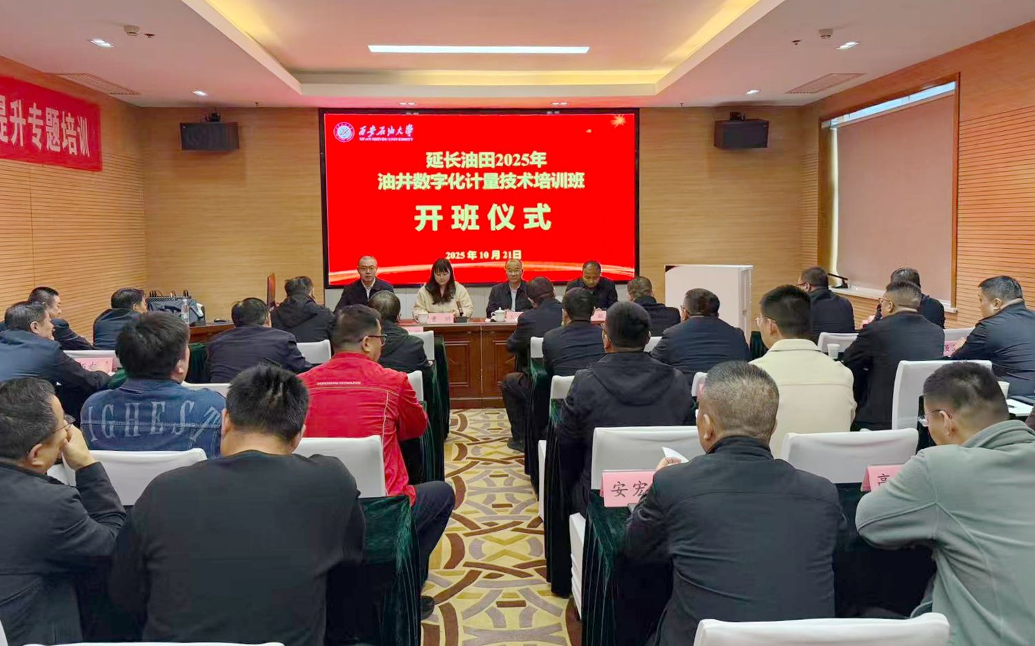 10月21日下午,由延長油田股份有限公司(以下簡稱“油田公司”)主辦、我校承辦的“2025年油井數字化計量技術培訓班”在延安順利開班。油田公司各采油廠、各分公司作業區的生產業務骨干和技術計量人員參加培訓。