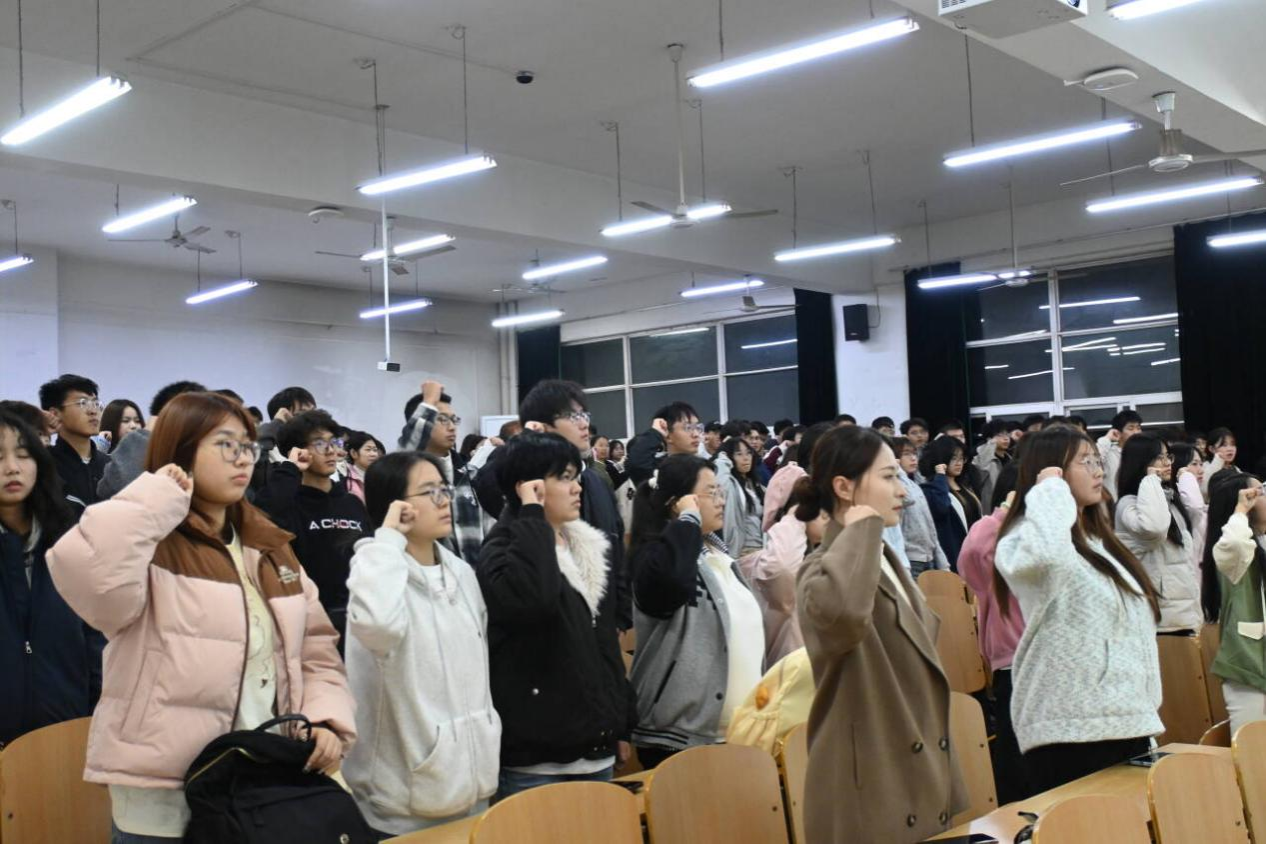 培訓尾聲,心理委員聯合協會會長陳儼帶領全體班級心理委員進行“我是一名心理委員”的宣誓。莊嚴肅穆的宣誓儀式,進一步強化了心理委員的角色使命感與職業神圣感。