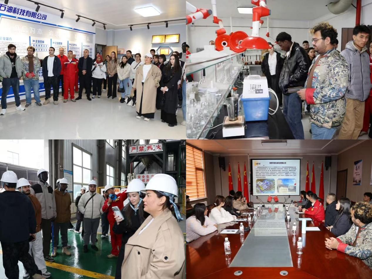活動首站聚焦中國能源領域發展,師生一行到訪陜西萬德石油科技有限公司。公司副總經理李耀龍對師生表示歡迎,結合企業發展歷程、主營業務,系統介紹石油行業最新形勢與未來戰略規劃,幫助國際學生建立對中國能源企業創新成果的整體認知。在工作人員帶領下,國際學生依次走進泥漿實驗室、理化實驗室、固井實驗室、自控中心及高分子集合物、纖維素生產車間,直觀了解各類設備功能、實驗原理與生產流程,清晰掌握現代技術在石油科技領域的實際應用。互動交流環節中,國際學生結合自身專業知識,圍繞參觀中的疑問積極提問;企業工作人員逐一細致解答,并就國際學生未來在華、在企就業發展展開深入探討,為學生職業規劃提供參考。