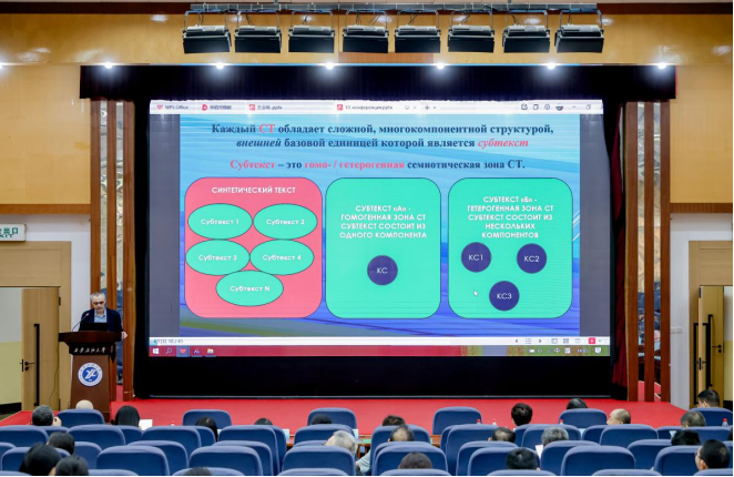 西安石油大學Dmitry I. Ivanov教授作題為《認知人文符號學在區域國別研究中的應用》的主旨報告,強調在認知人文符號學理論框架下,區域被視為一個多層面的多義符號對象—由不同類型復合文本構成的系統。區域是一個主體空間。